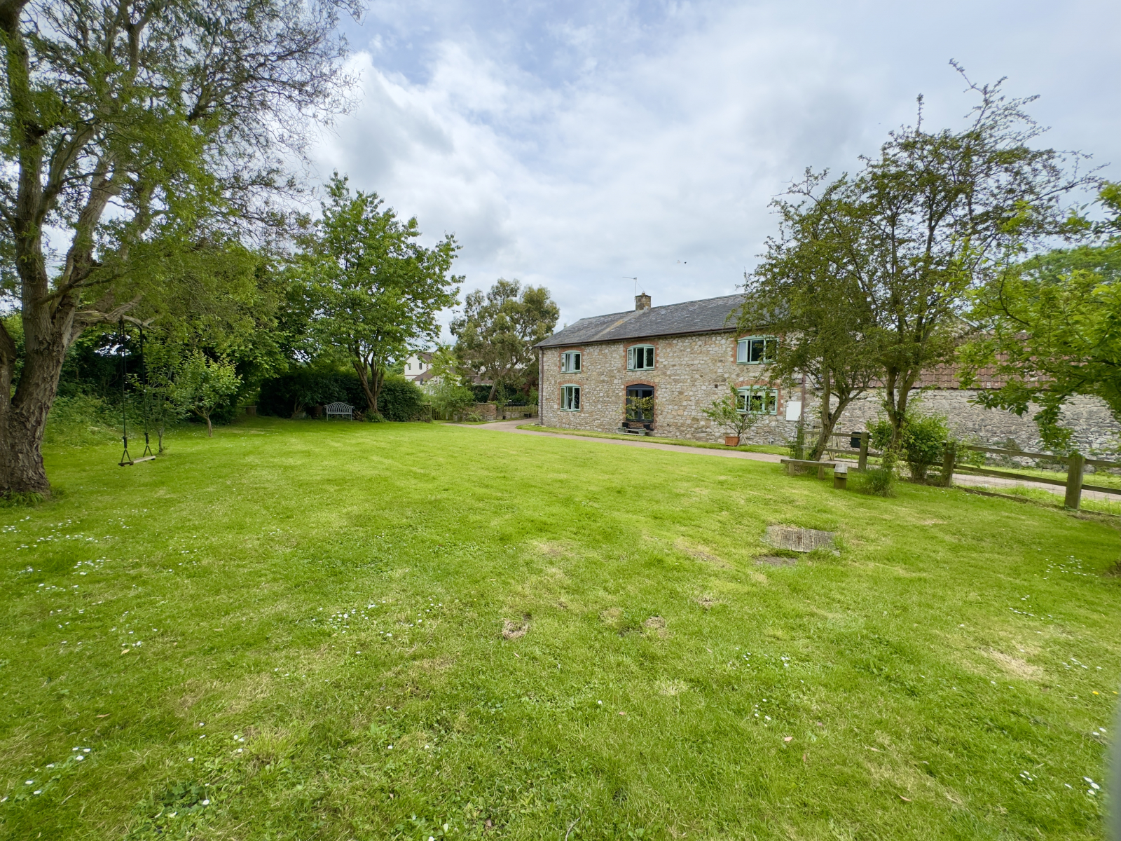 The large private rear garden is laid to lawn, with borders of mature hedgerows providing a haven for wildlife. Having an abundance of mature trees with views over the countryside and beyond. Gated access and driveway leading to the front of the property.