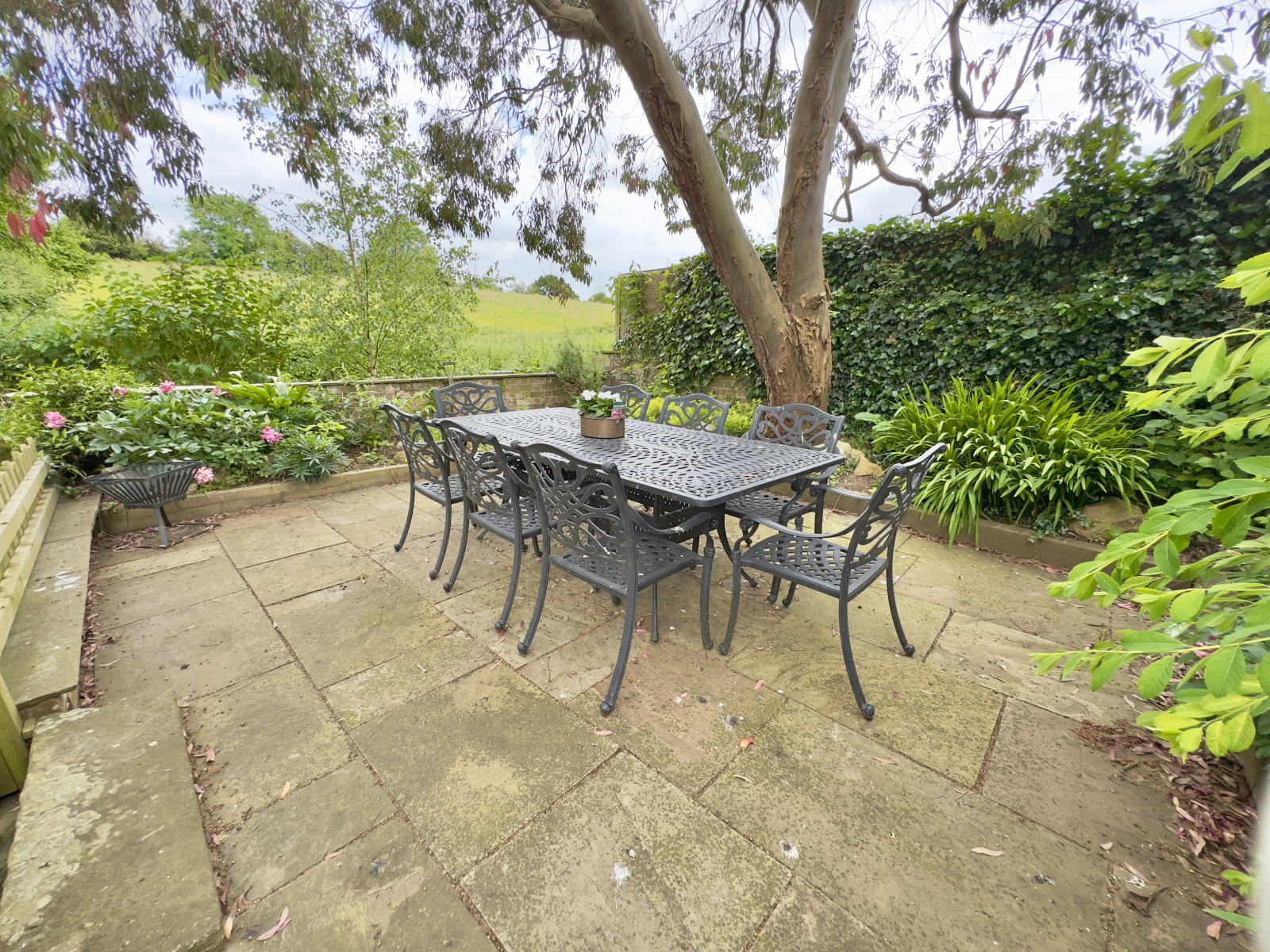 To the side is an alluring, raised paved area perfectly placed to enjoy far-reaching and breathtaking countryside views, whilst entertaining friends and family. Having raised borders of flowering plants and shrubs this part of the garden feels like an oasis to enjoy the peace and charm of rural living.
