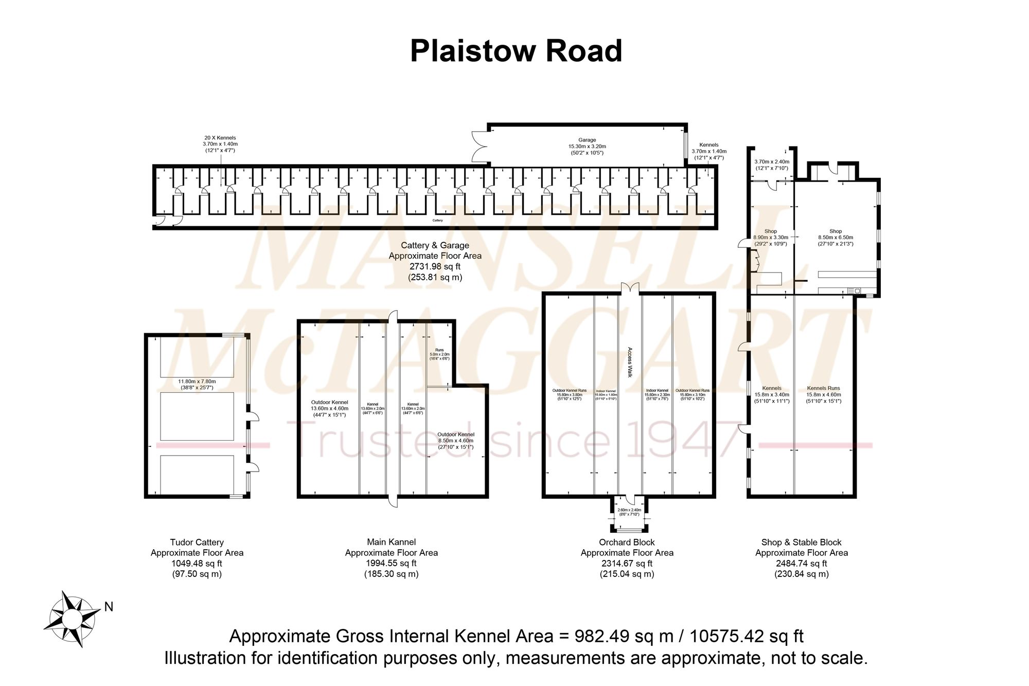 - Over 14,000 sqft of kennels/outbuildings with space for 95 dogs & 78 cats