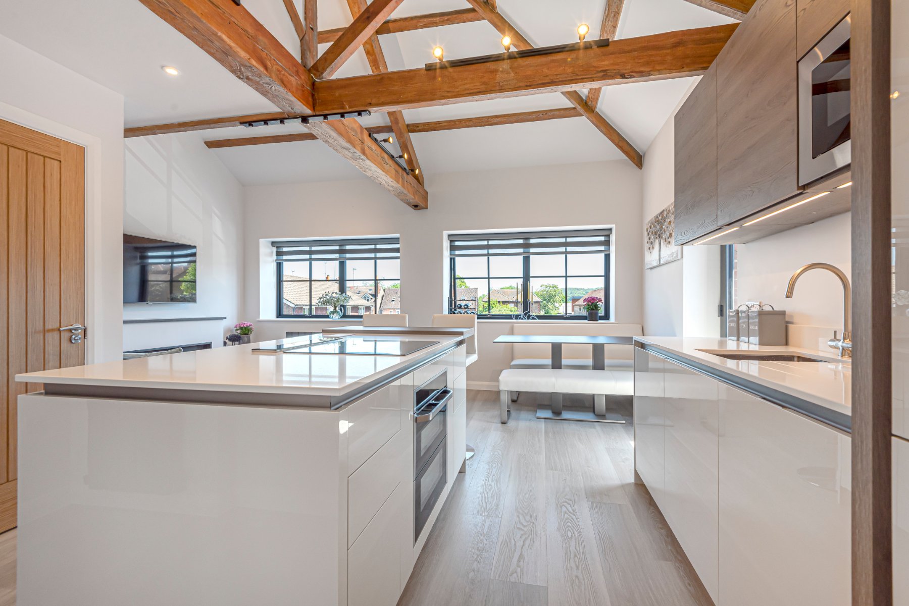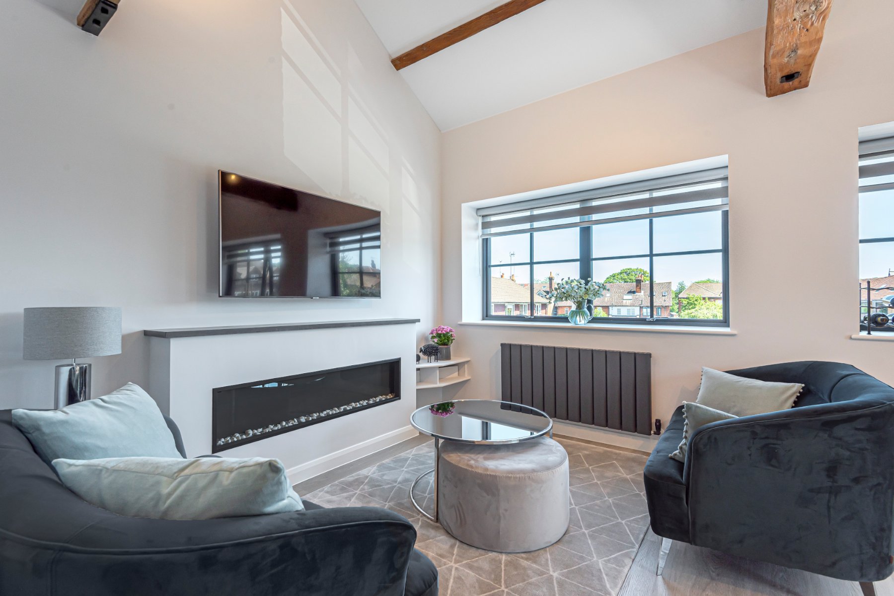 - Magnificent vaulted ceilings with original exposed timber beams with Karndean flooring, a fantastic inset Gazco Radiance contemporary fireplace and fitted 55inch Samsung TV*