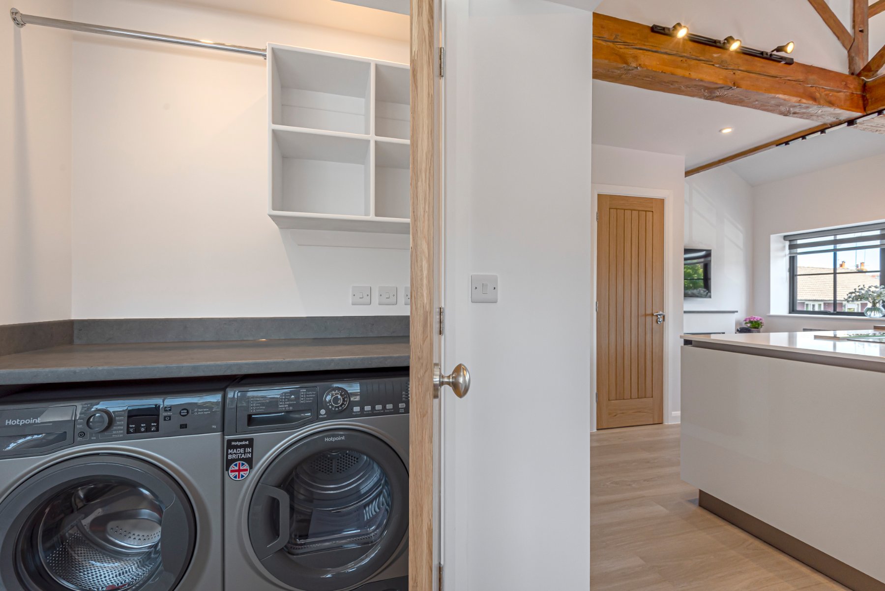 - Handy hidden utility area with laundry appliances in kitchen and door to Juliet balcony in dining area*