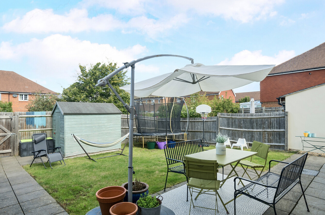 - Landscaped rear garden with patio, lawn and storage shed