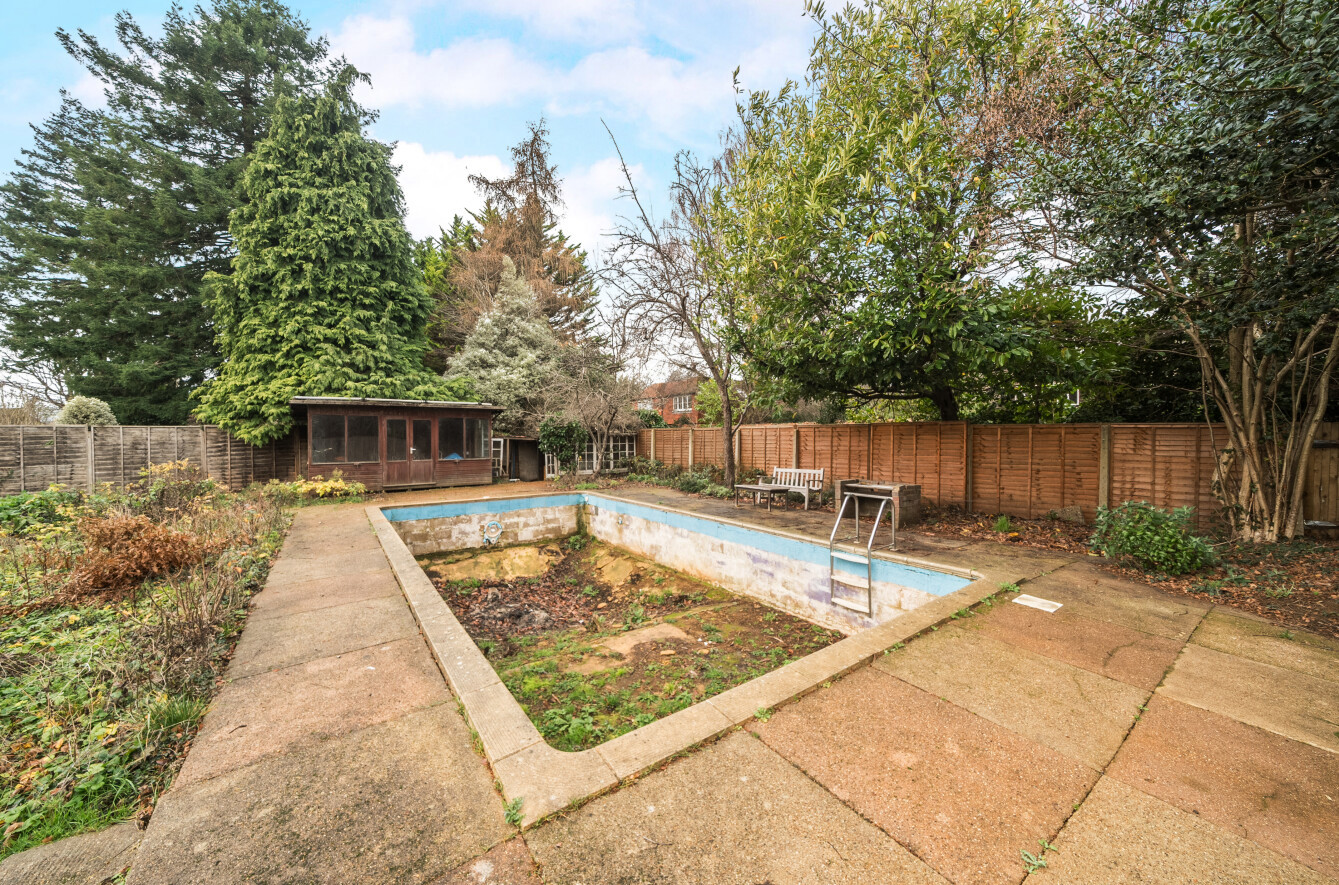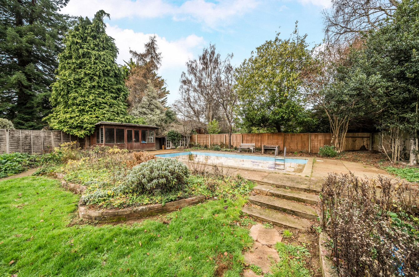 - Private mature gardens with disused swimming pool