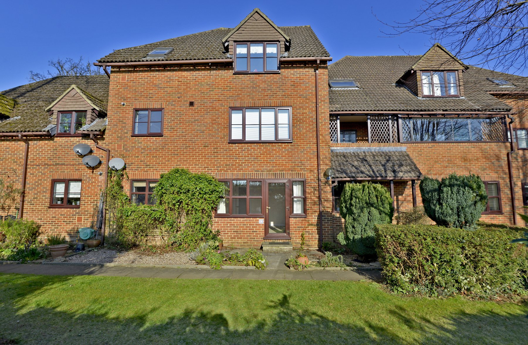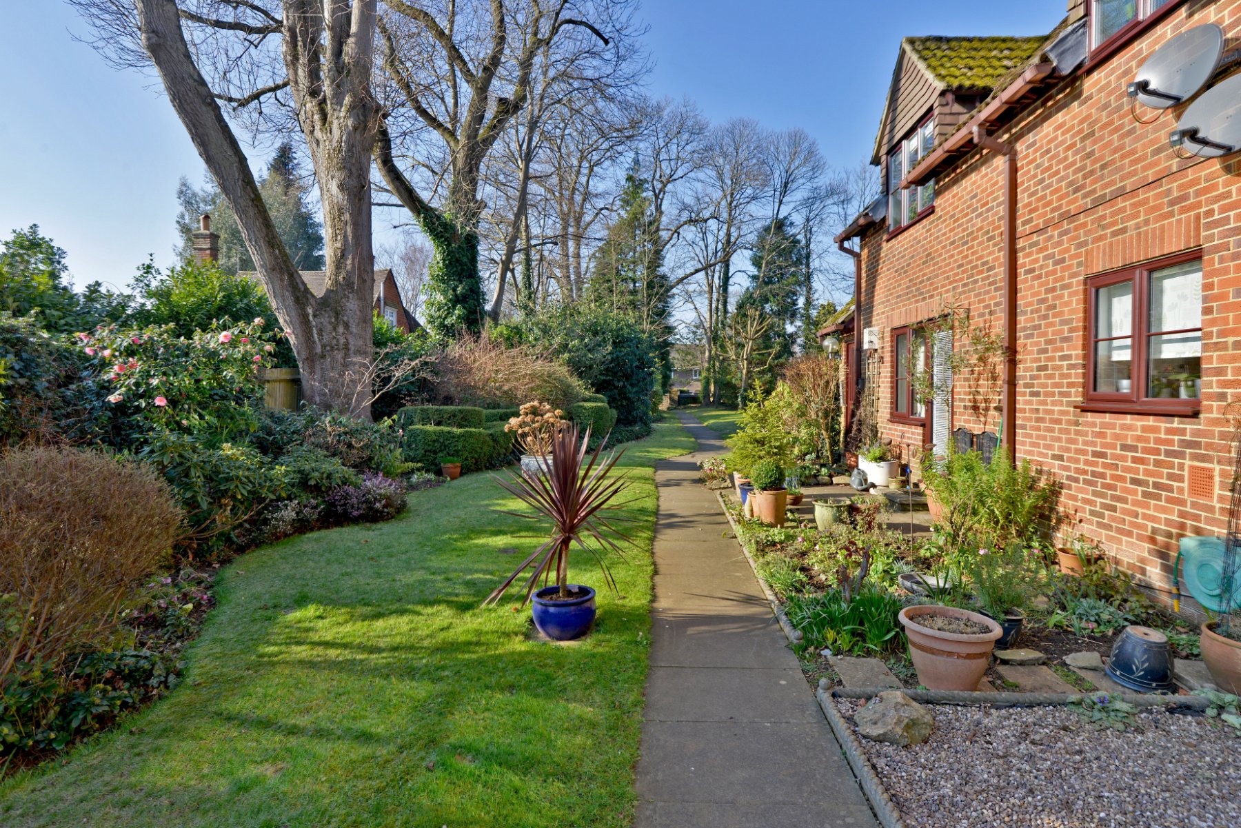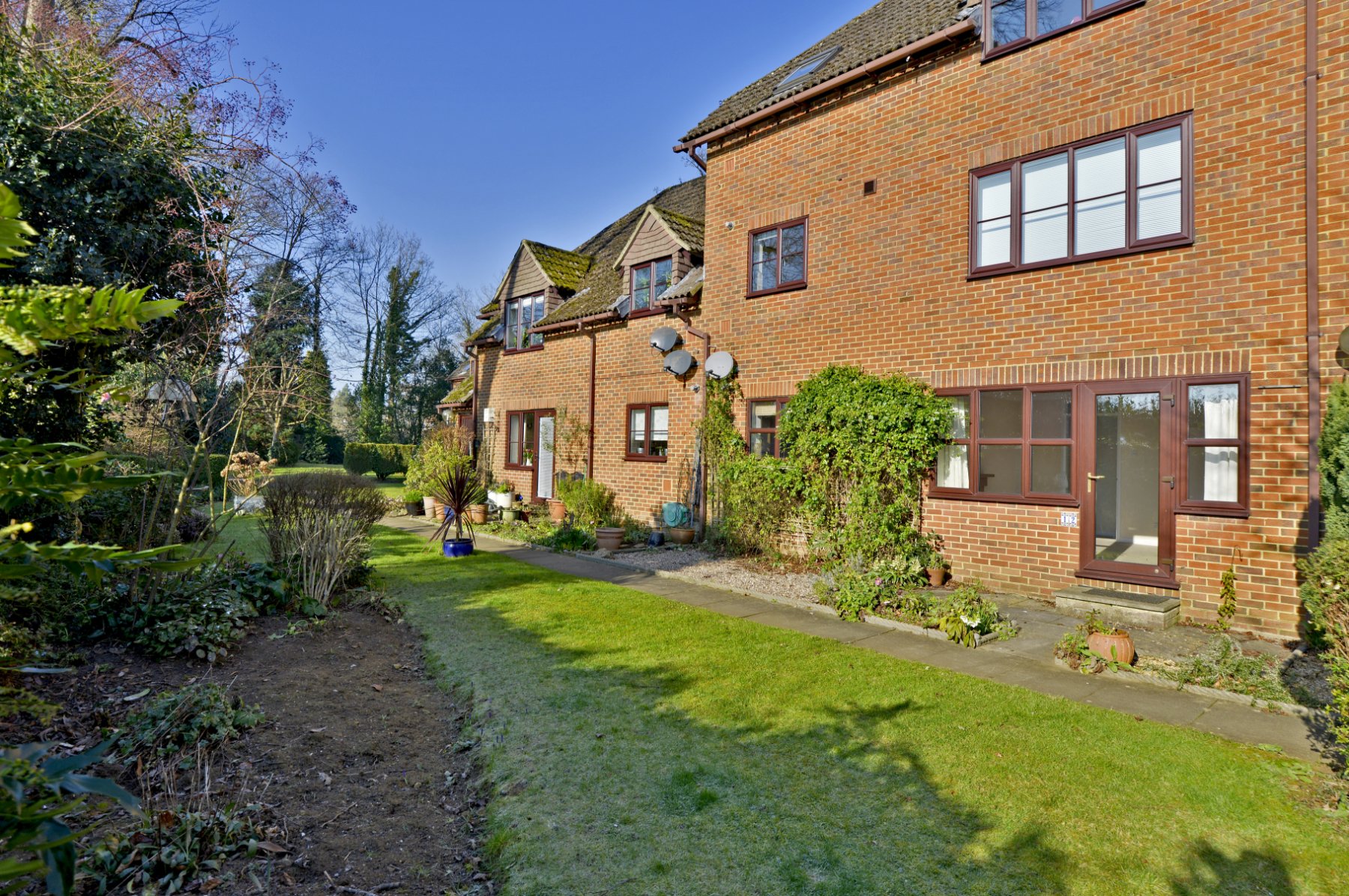 - Beautifully maintained communal grounds with lawns, plants, shrubs, and trees.
