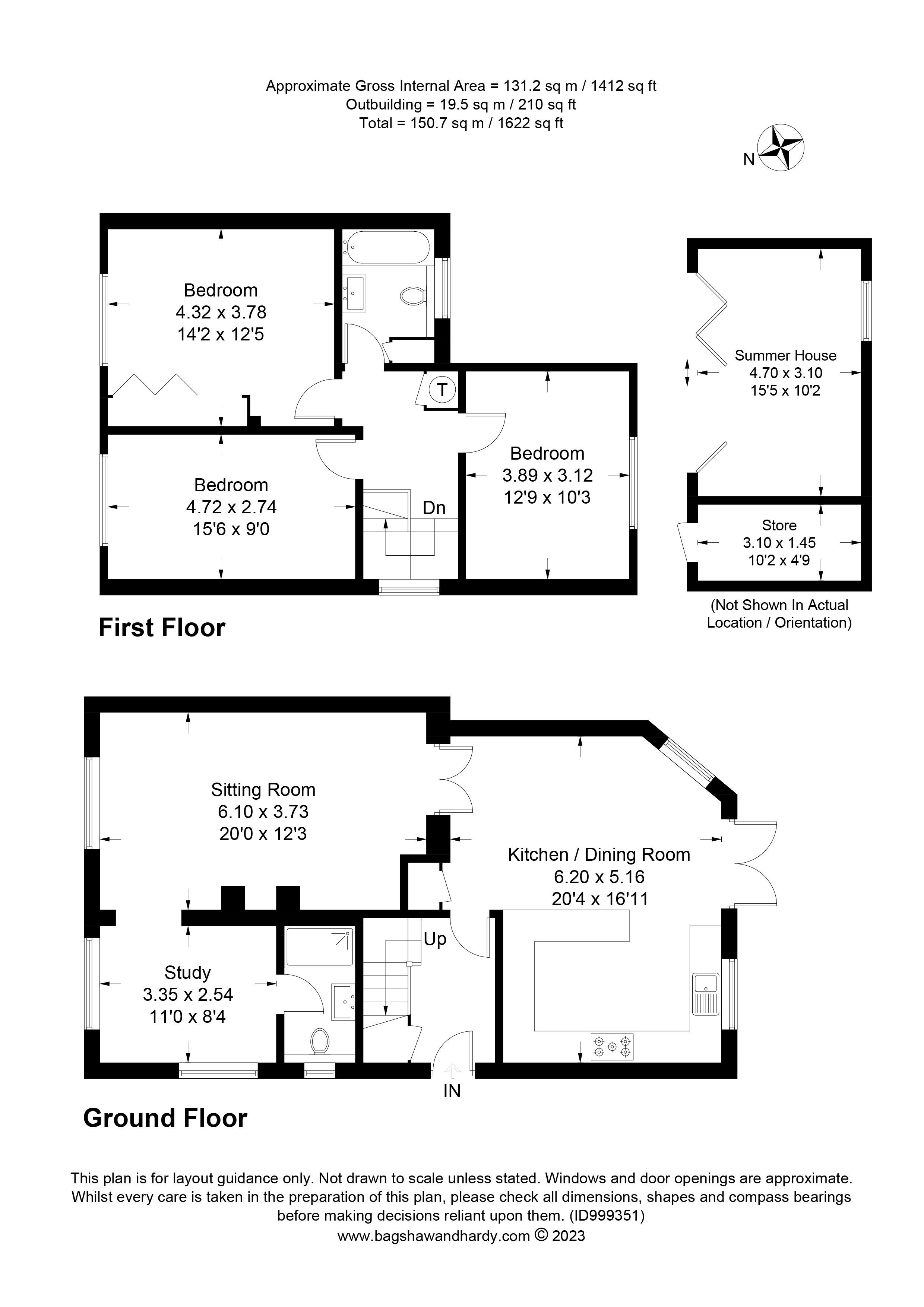 - Large sitting room and adjoining double aspect study with an en suite shower room