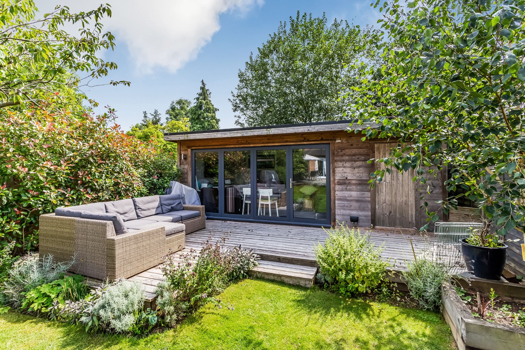- Fully powered contemporary garden room with bi-fold doors