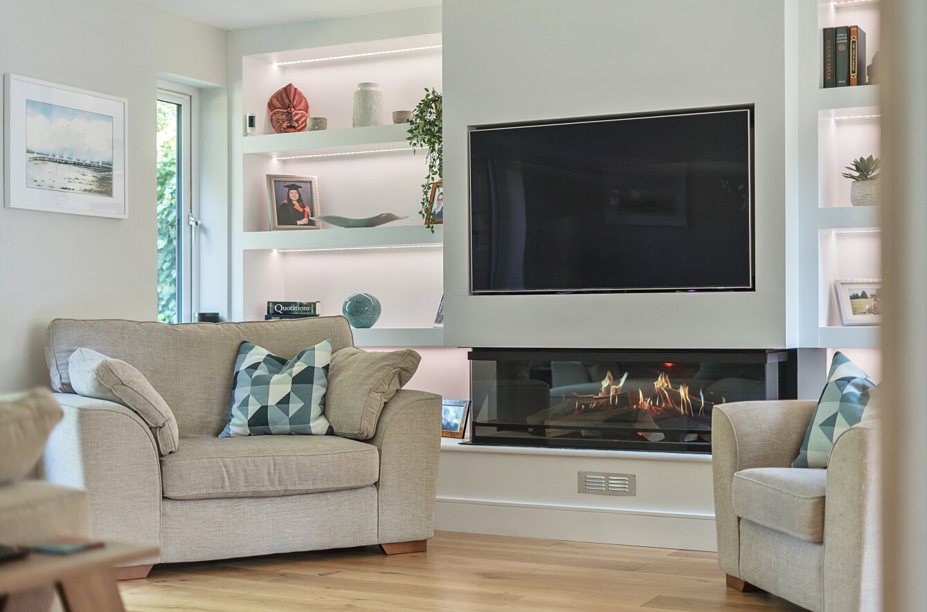 - Exemplary sitting room with contemporary fireplace
