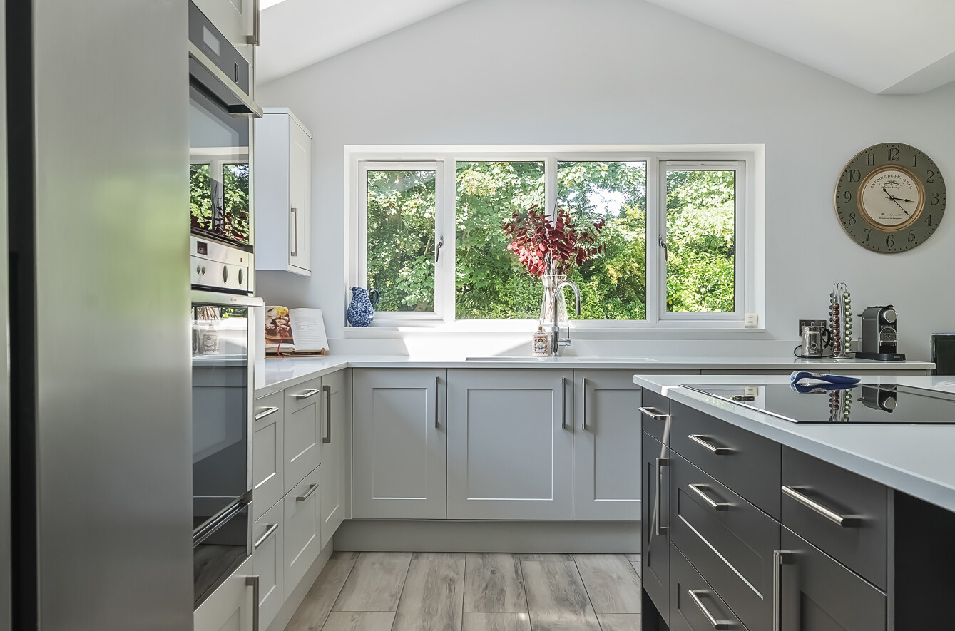 - Magnificent Shaker kitchen/dining/family room with vaulted ceiling