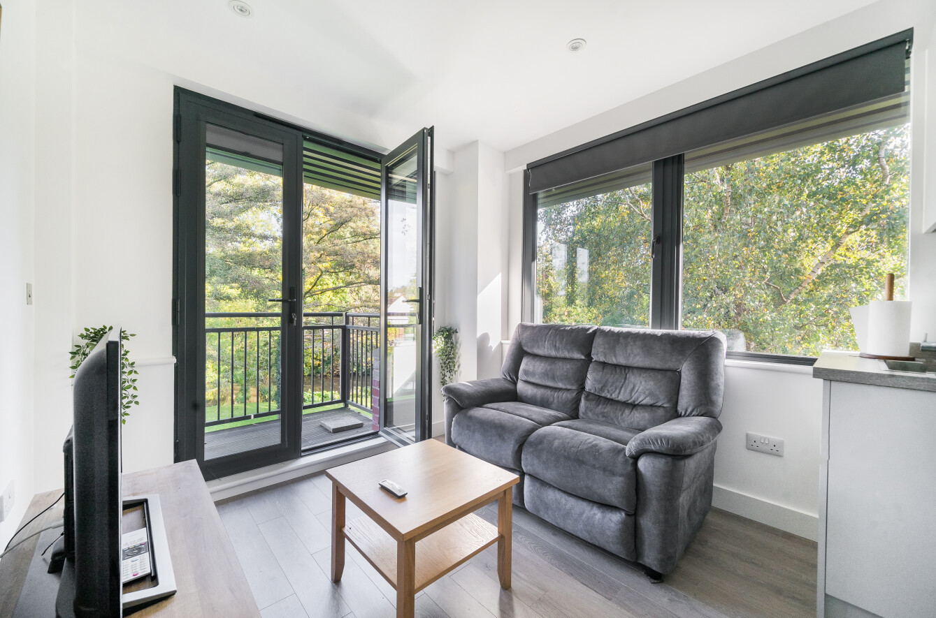 - French doors to a balcony with river views