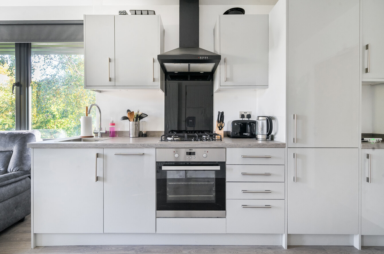 - Contemporary fully fitted kitchen area with integrated appliances