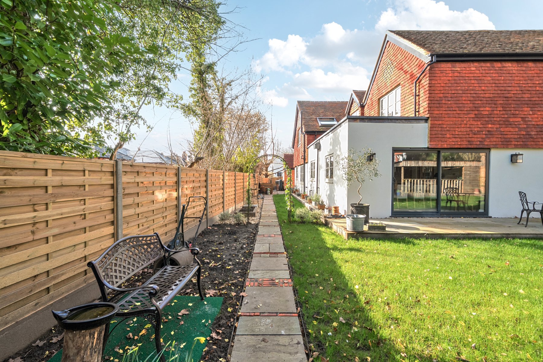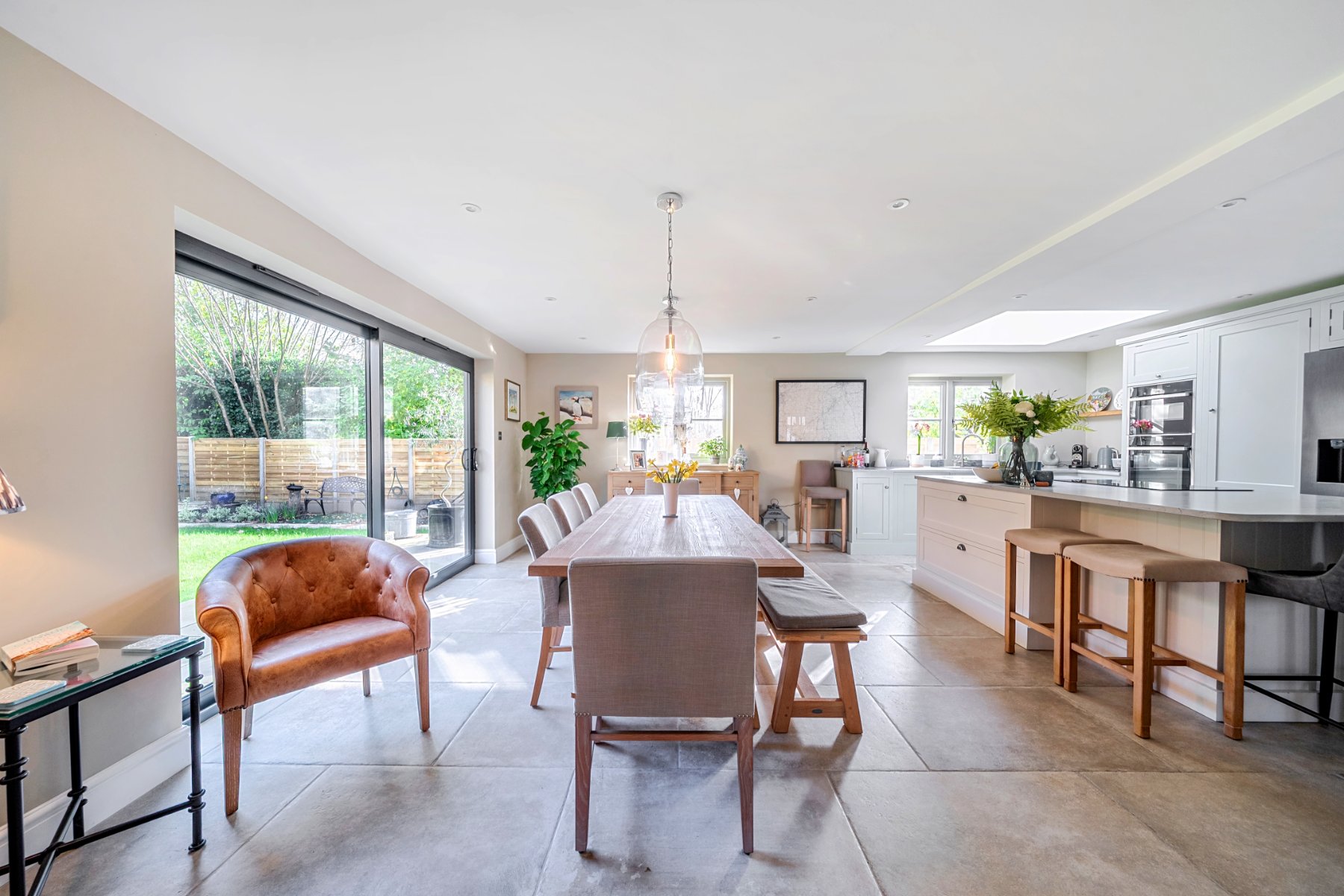 - Sliding doors opening directly onto the garden