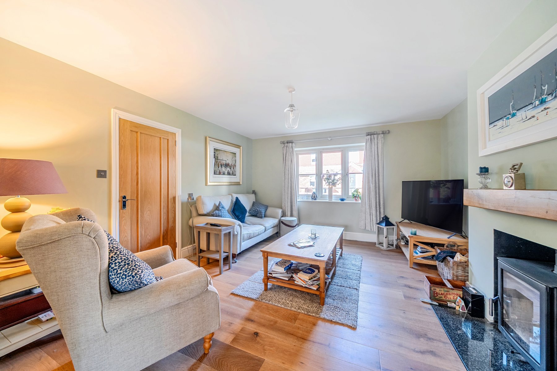 - Four reception areas including sitting room with log burner
