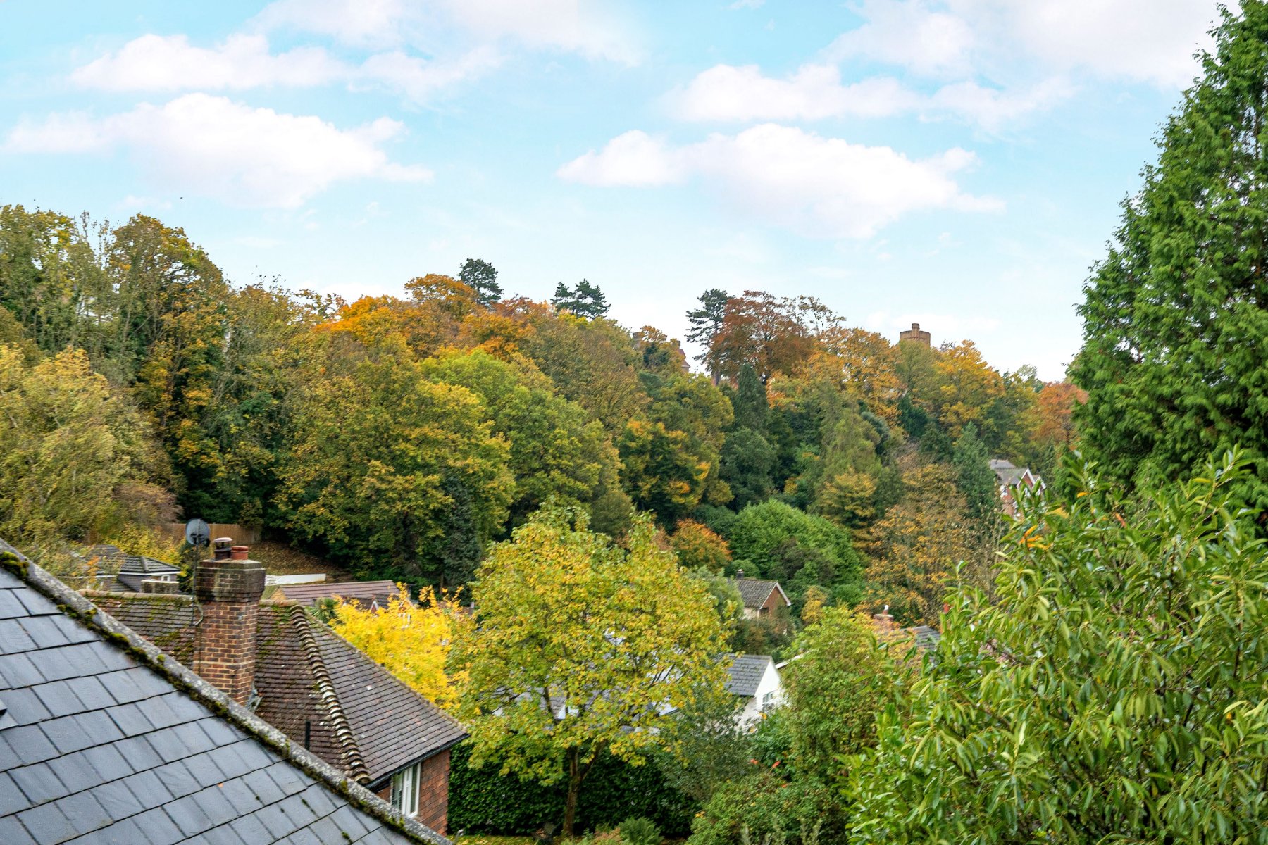 - Beautiful leafy outlook with far-reaching views across scenic, tree-lined surroundings
