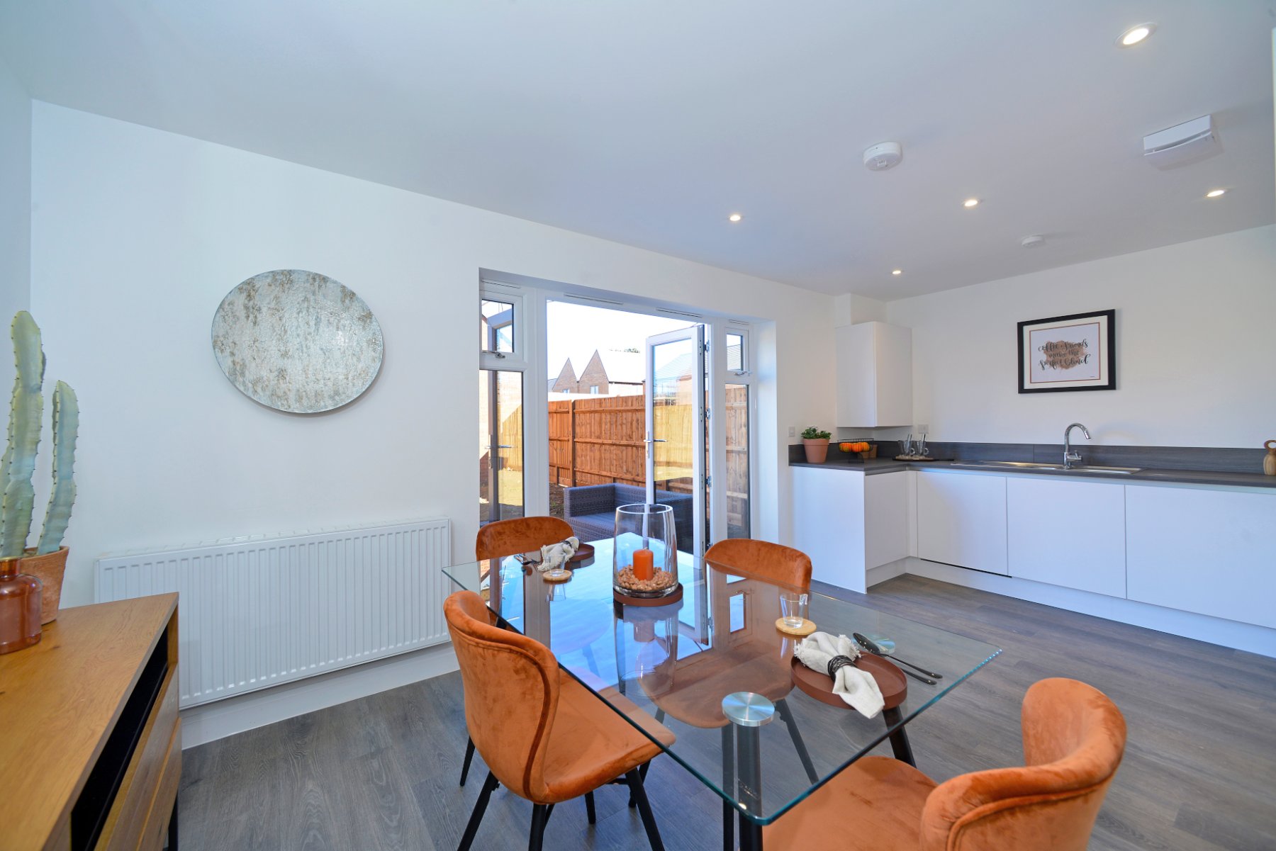 If you are in search of a contemporary living space, The Tunsgate provides a feeling of space from the moment you walk in. The hallway opens to the sitting room and flows through to the kitchen / dining room. Use these welcoming surroundings to entertain family and friends. Make light work of preparing family meals or tempting treats for dinner parties. Throw open the patio doors to enjoy drinks, lunch or dinner al fresco. Wander past the WC and notice the handy storage space on your way to the first floor. On the first floor there are three bedrooms and a family bathroom. Did you notice the en suite in the main bedroom? Perhaps one of the smaller rooms would work well as a home office?