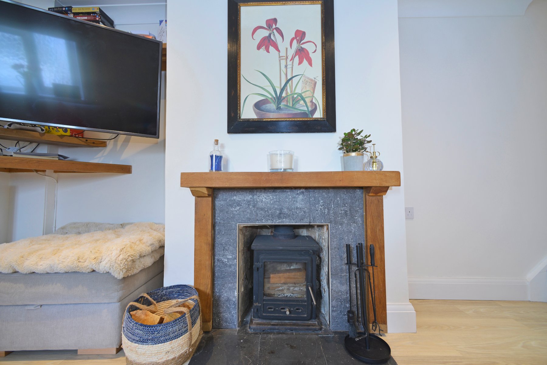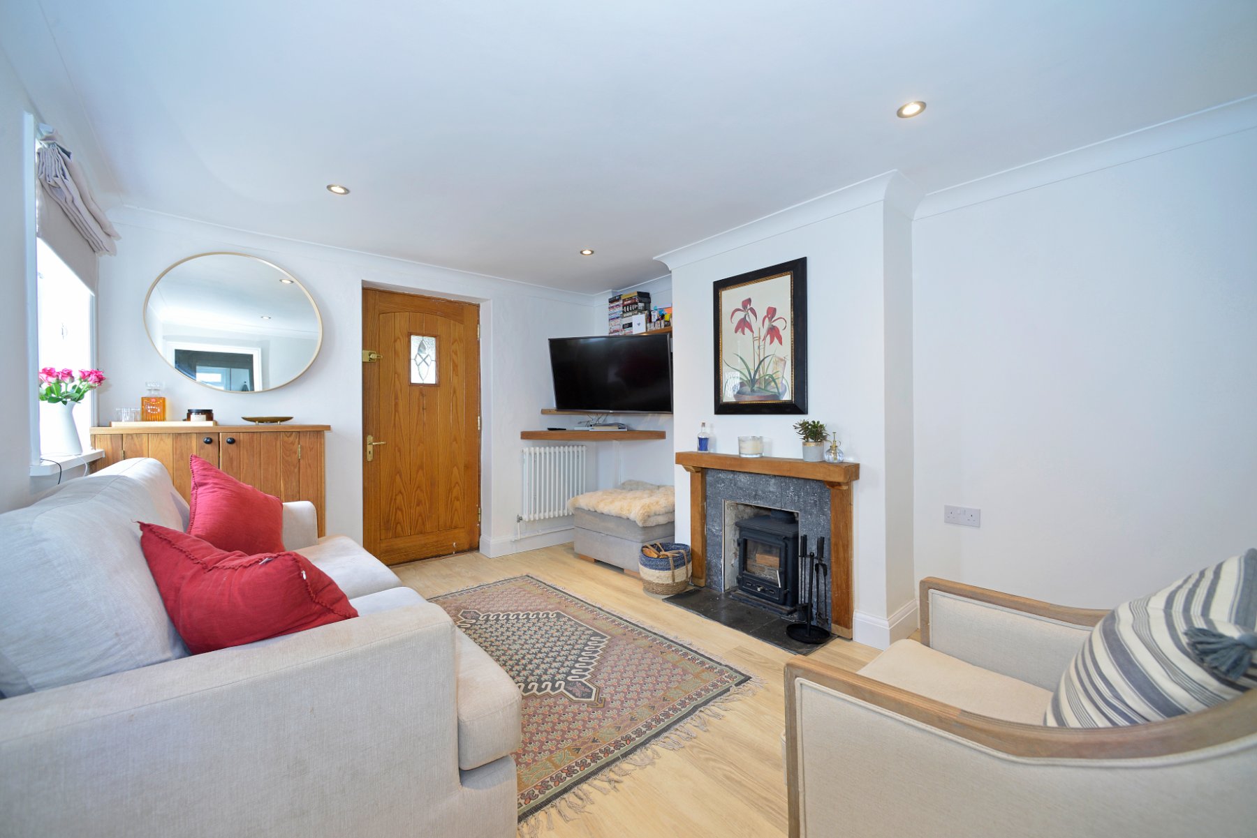 - Superb sitting room with wood burner and oak effect floor