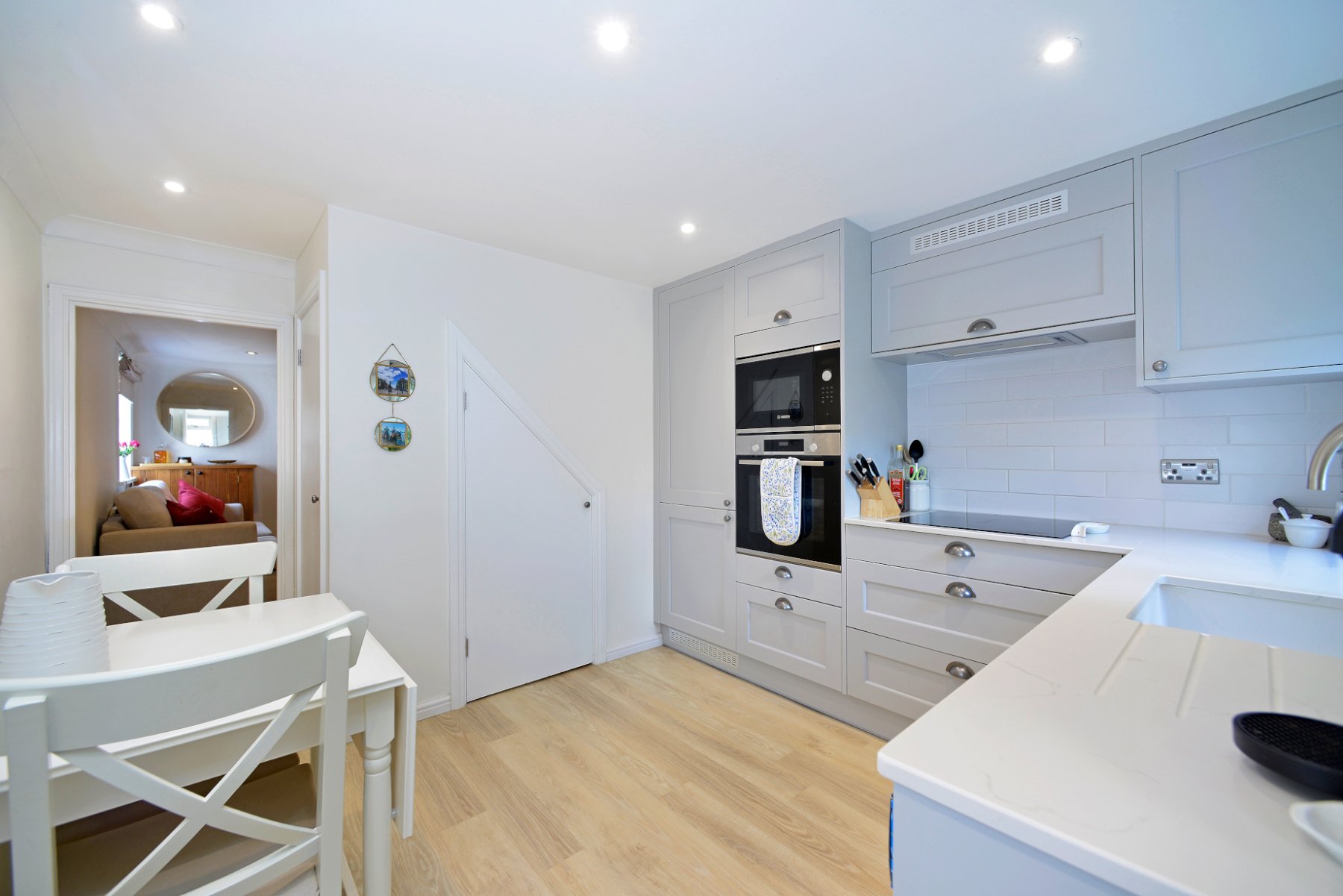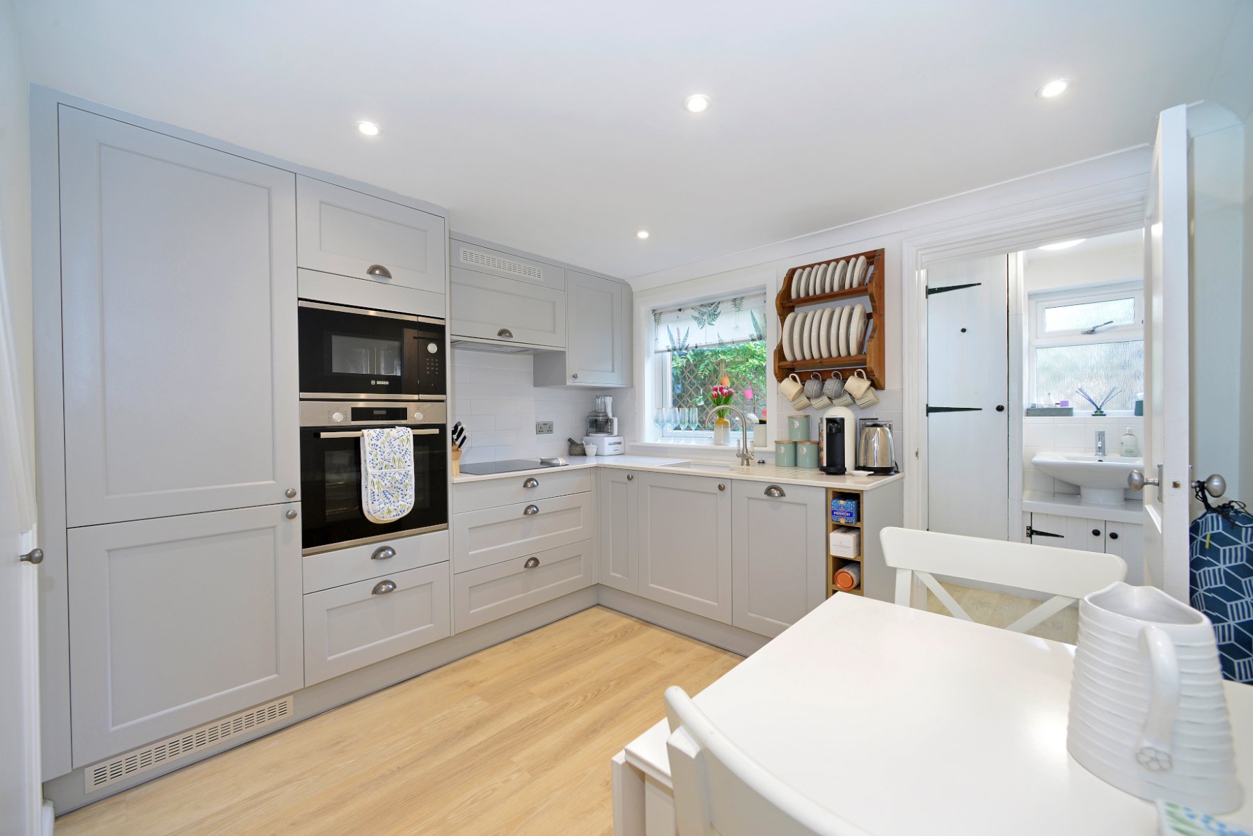 - First class Shaker kitchen/dining room with integrated appliances and quartz countertops