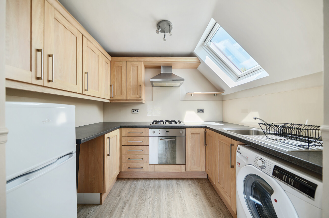 - Well-appointed kitchen with Velux skylight and integrated oven/hob