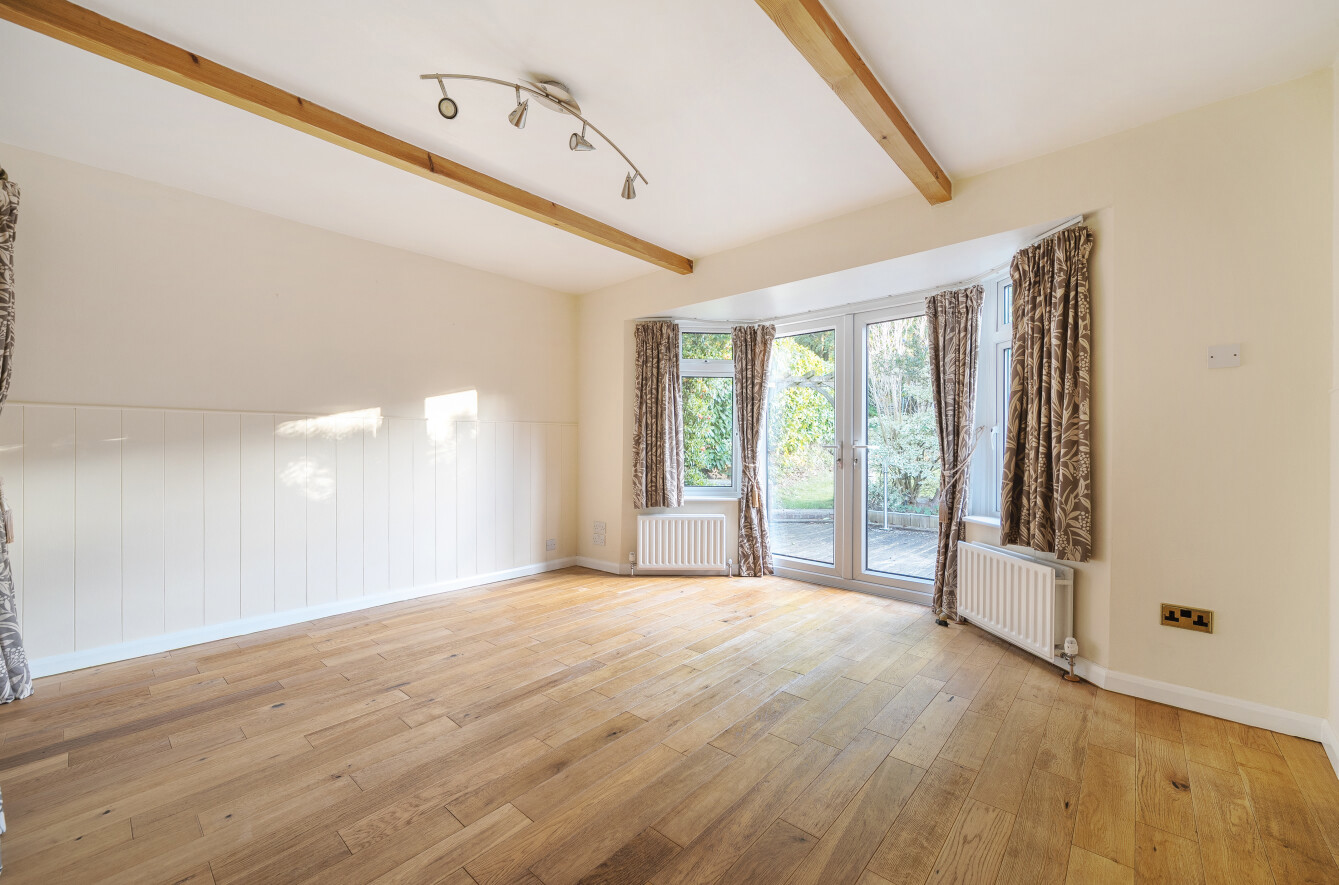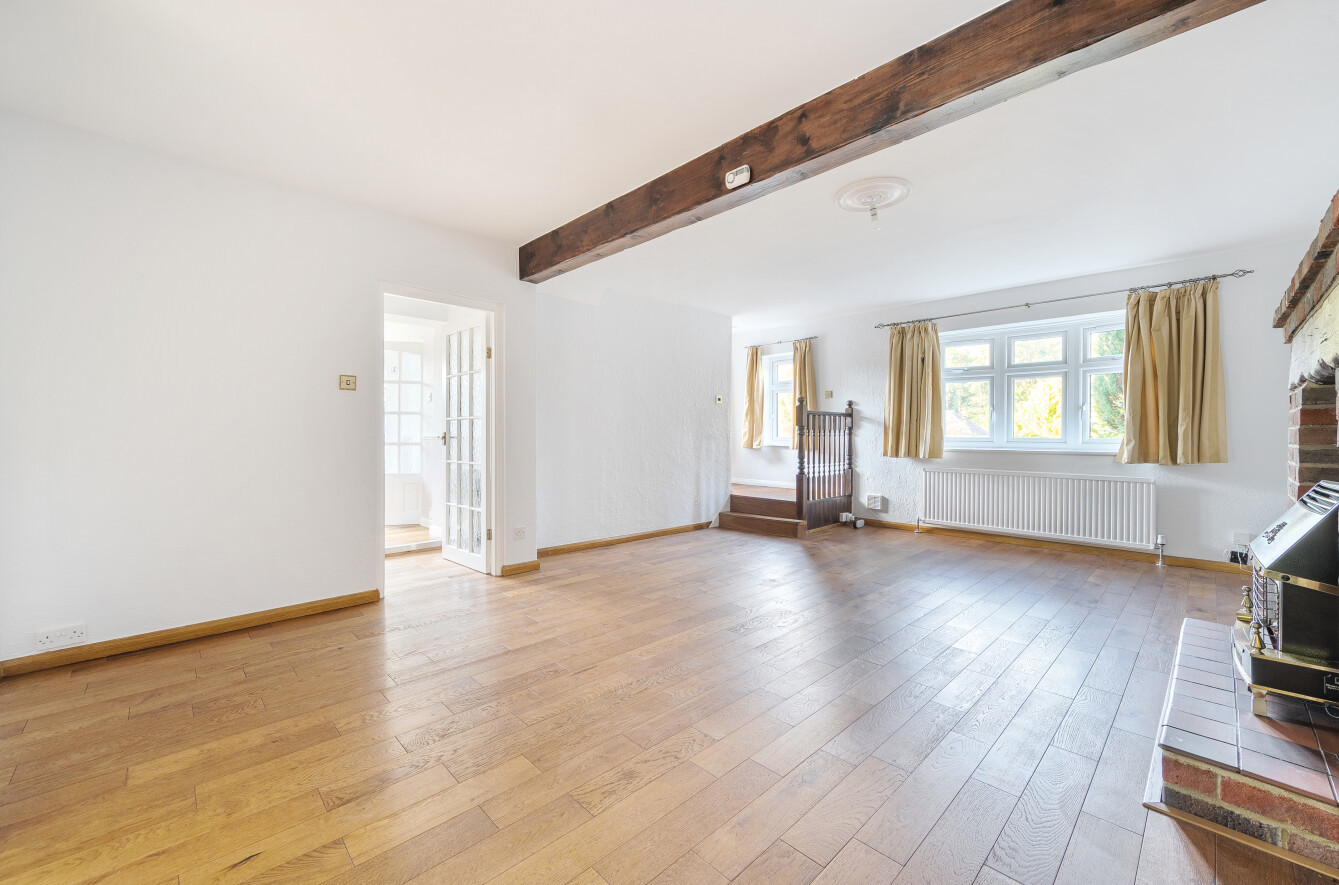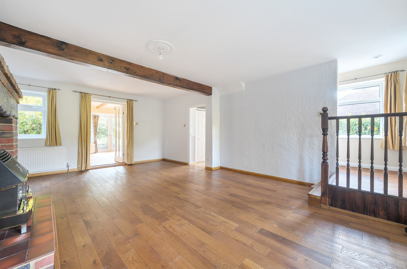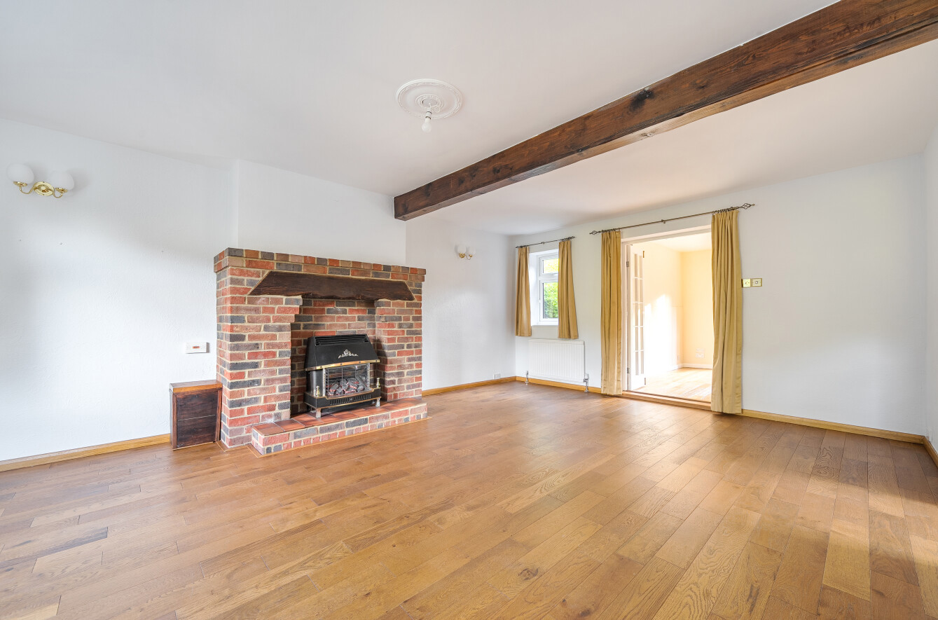 - Bright, spacious sitting room with feature brick fireplace and exposed beam