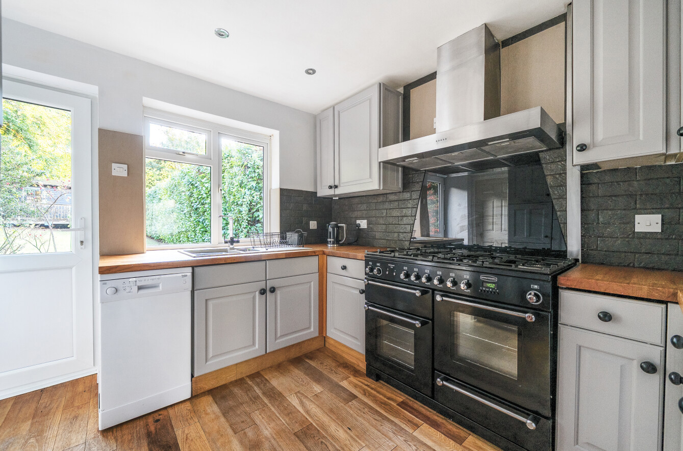 - Modern kitchen/breakfast room with range cooker and wooden worktops