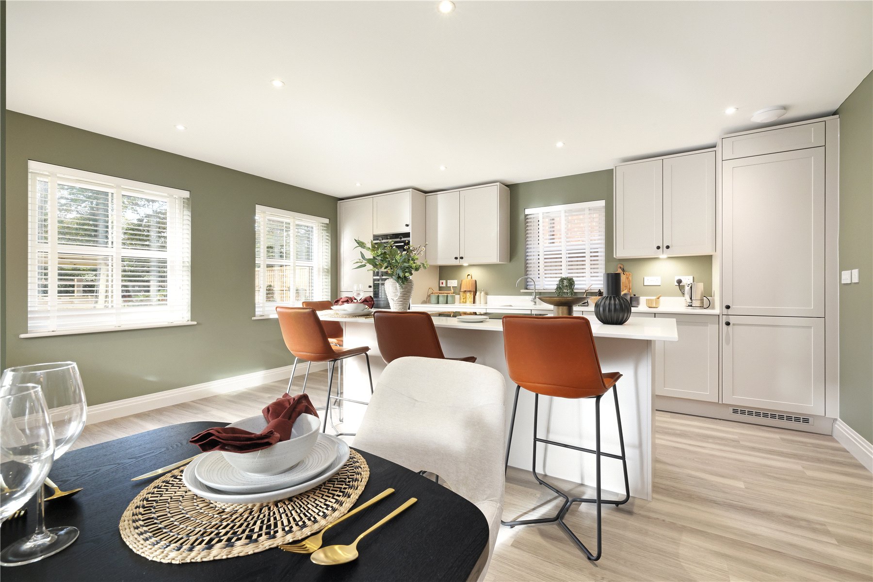 - Quartz worktops, integrated appliances and Quooker tap