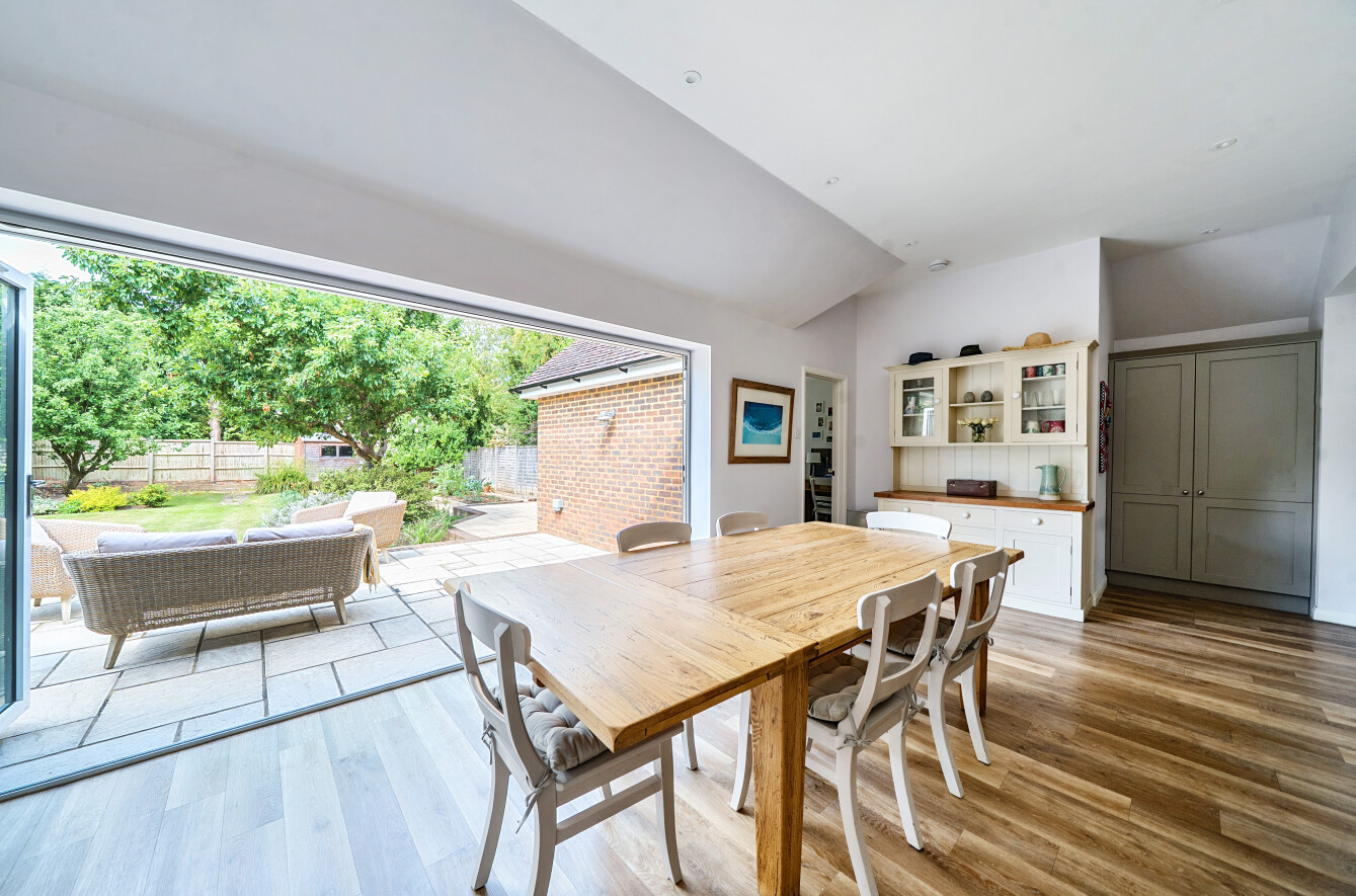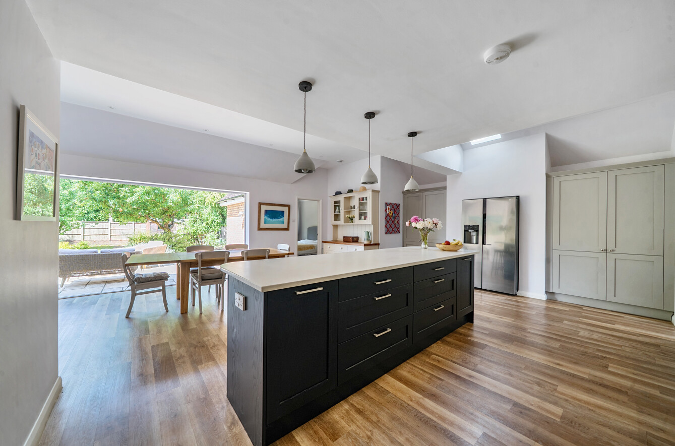 - Spacious Shaker-style kitchen/dining room with integrated appliances and bi-fold doors