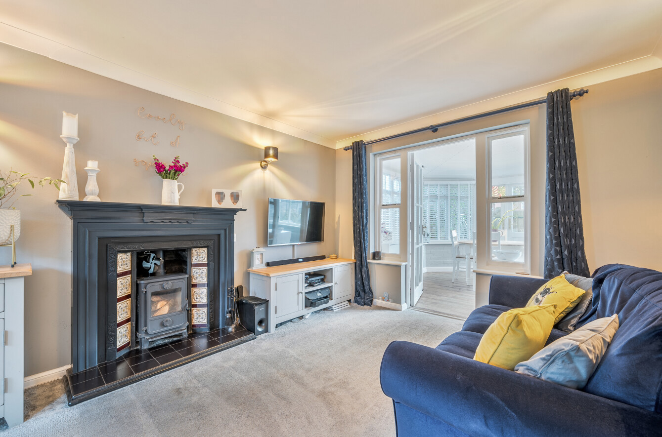 - Superb living room with wood burner and period fireplace