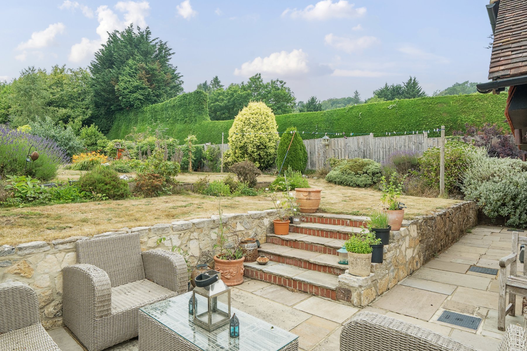 - Immaculately landscaped wrap-around gardens with multiple seating areas