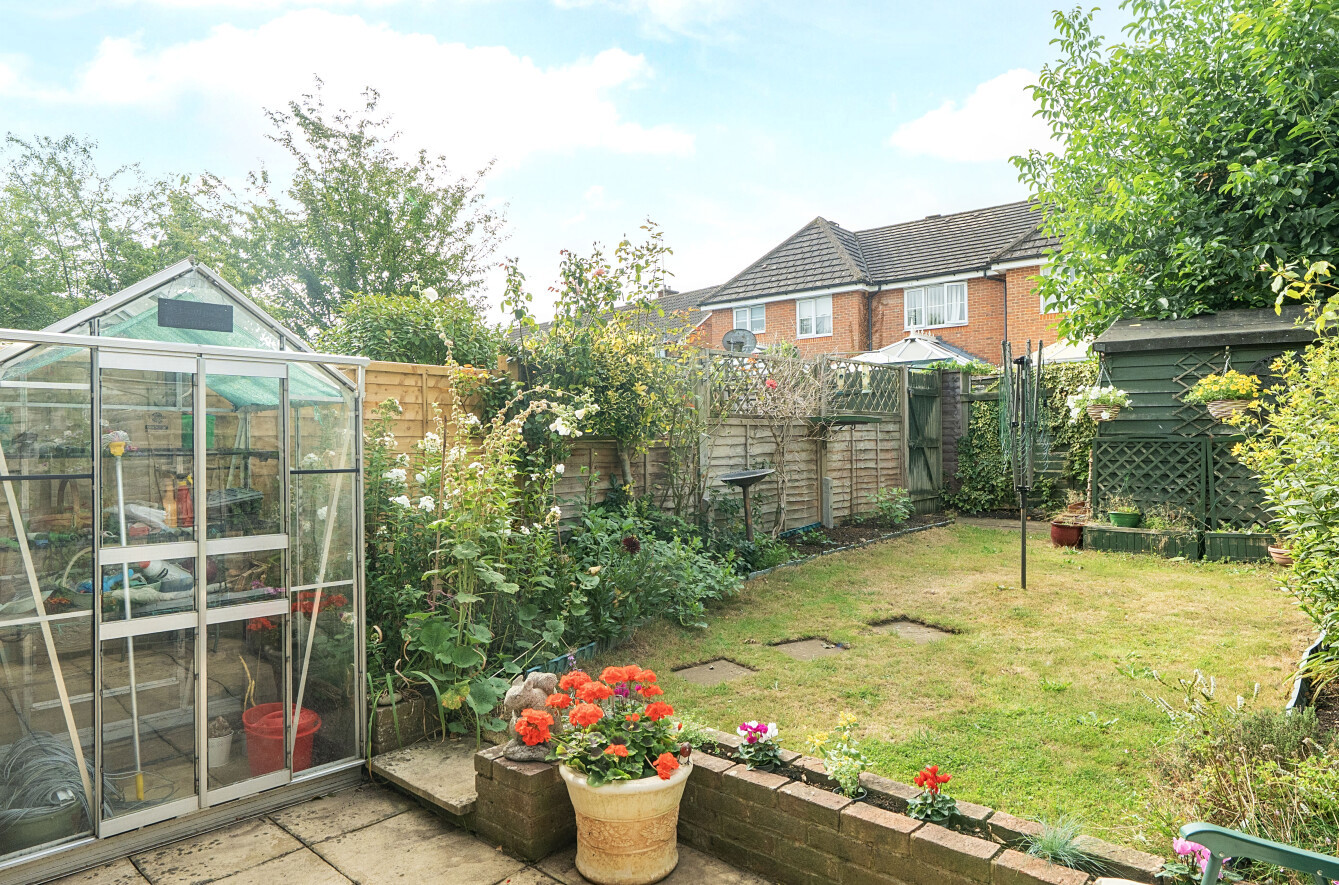 - Private rear garden with patio, lawn, greenhouse and shed