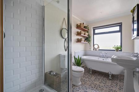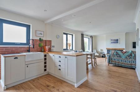 Step into the light and airy heart of the home an impressive open plan kitchen, dining, and living area that creates a fantastic social environment. The contemporary kitchen is well appointed with ample unit and worktop space, ideal for both everyday living and entertaining. The living area is enhanced by a charming log burner, adding a cosy and welcoming touch. All three bedrooms are generously proportioned, offering comfort and flexibility, while the spacious bathroom features both a separate bath and shower for added convenience.