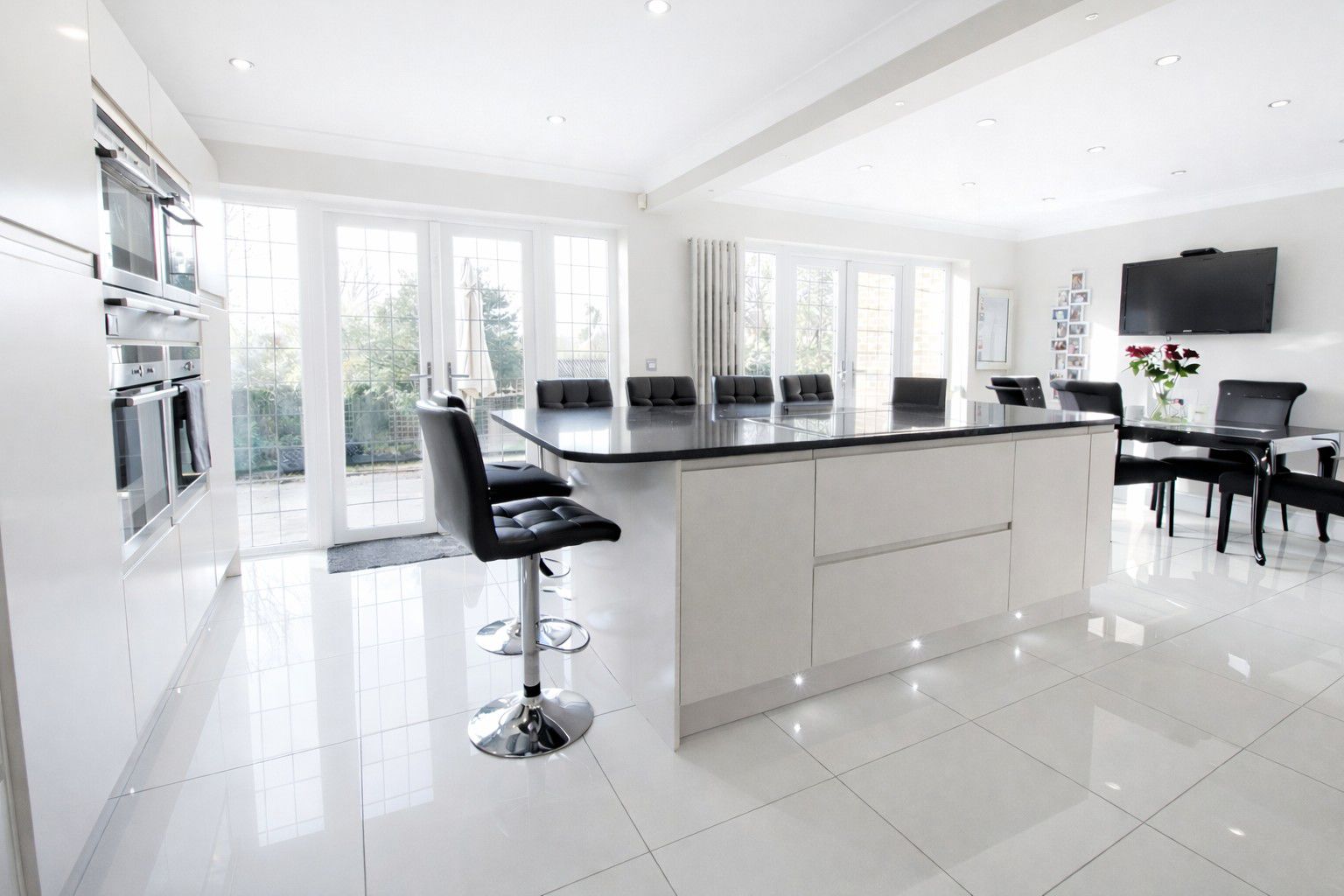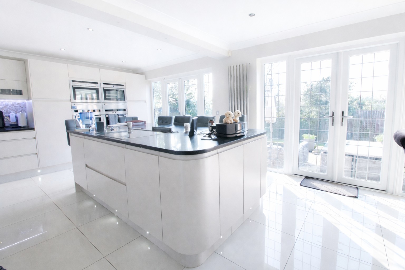 - LARGE MODERN L-SHAPED KITCHEN WITH CENTRAL ISLAND