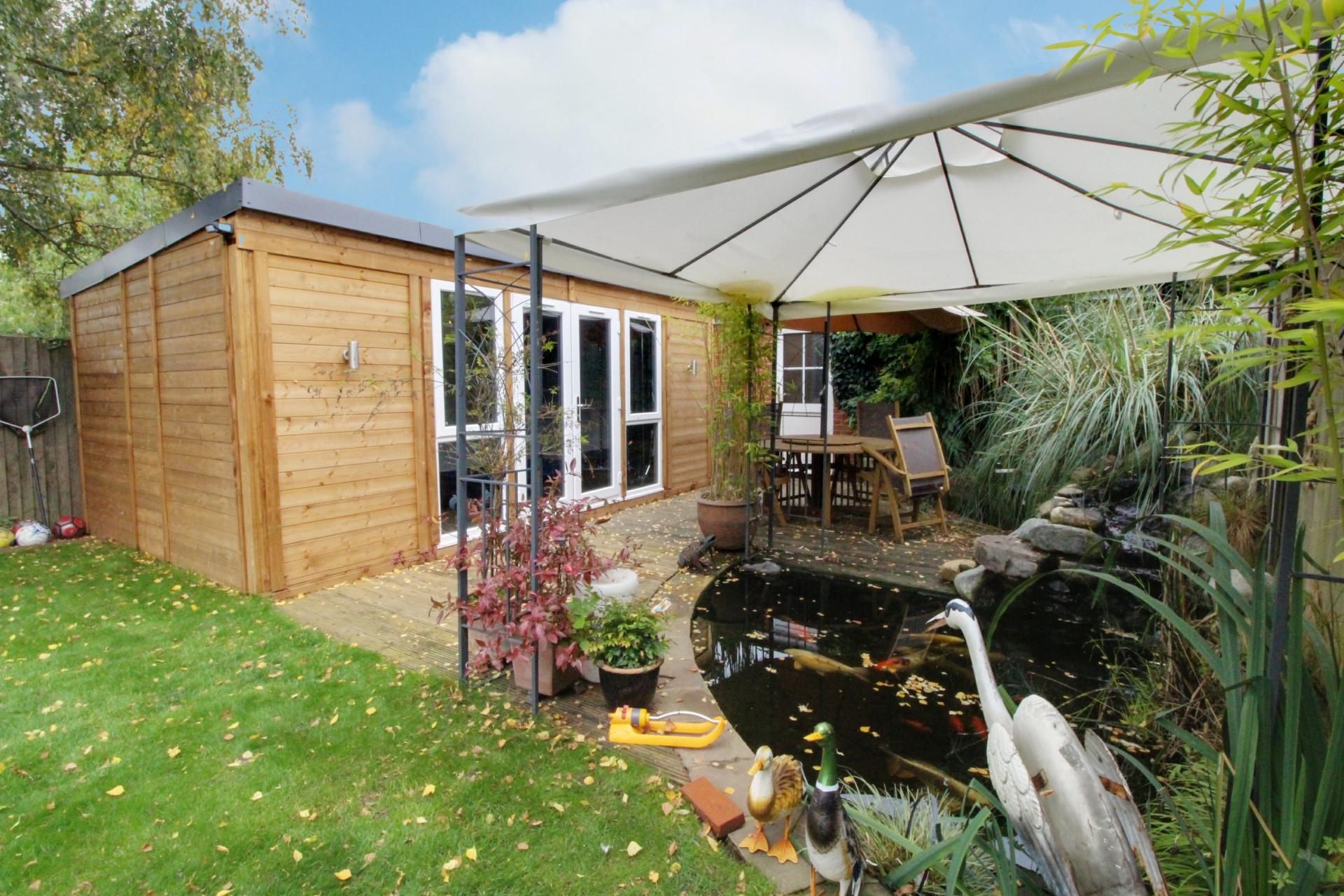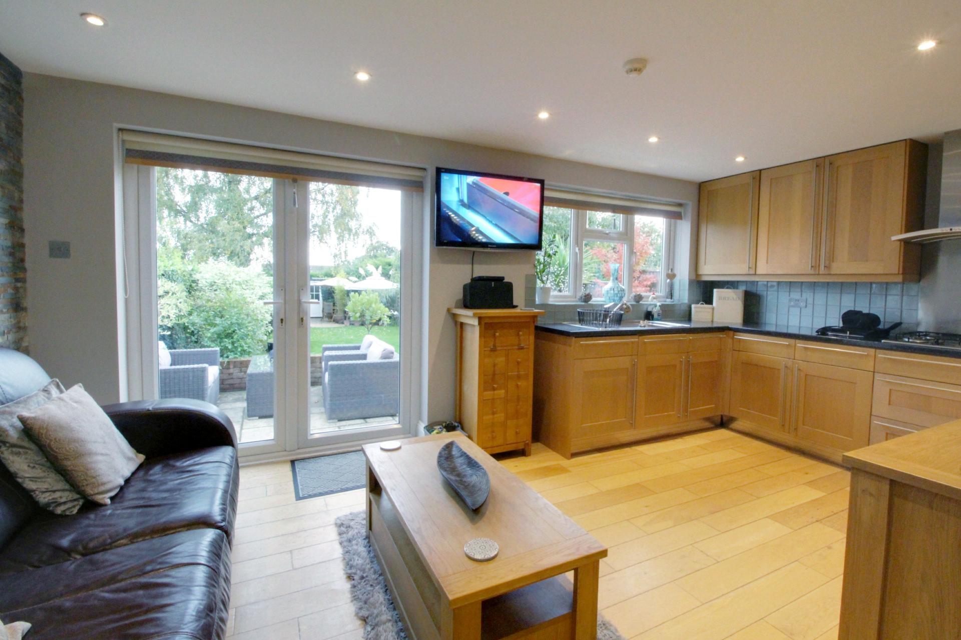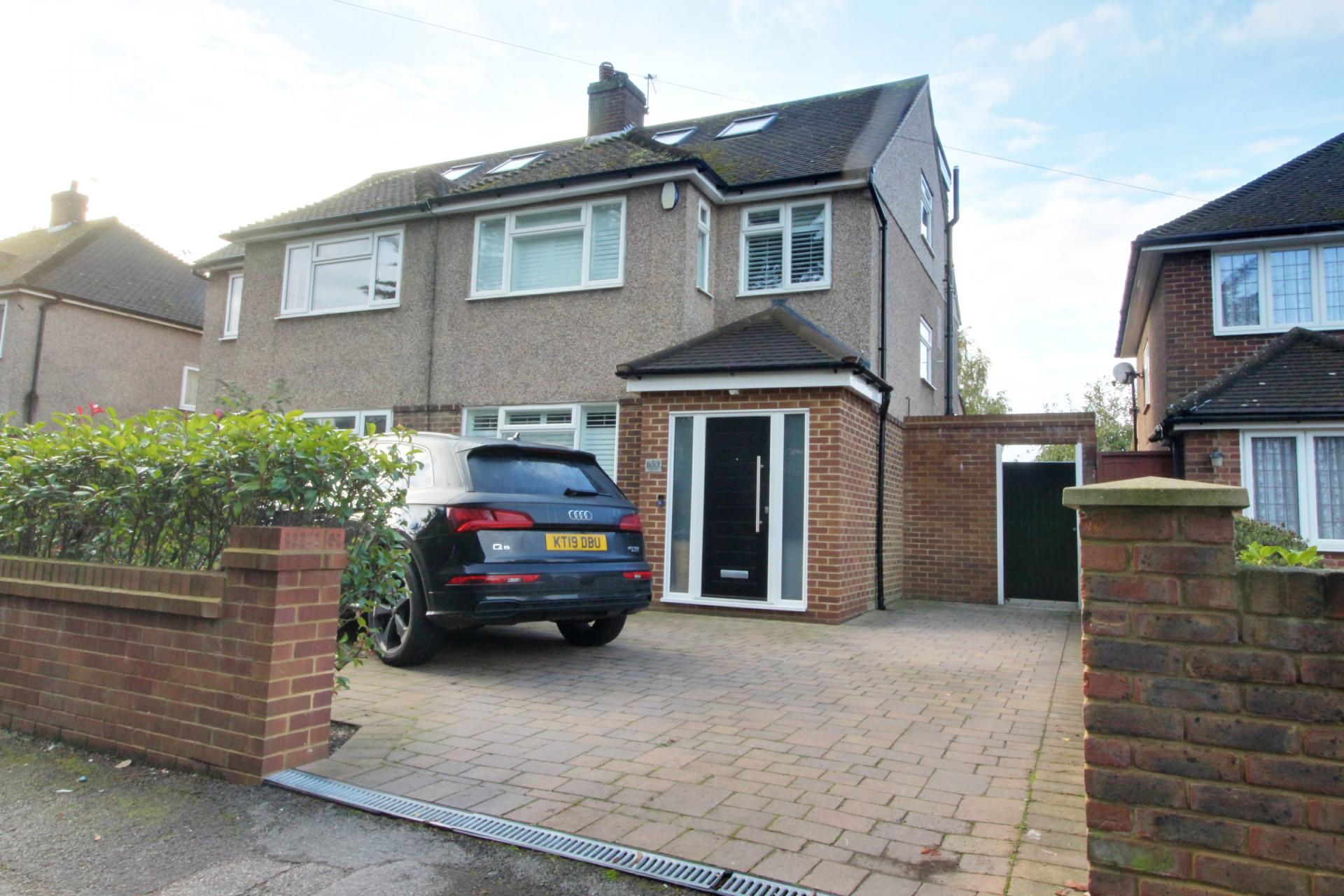 A stunning four bedroom semi-detached family home which has been extended by the current owner to provide substantial modern living space. The property has been finished to a high specification and offers well balanced accommodation throughout. Accommodation flows beautifully with ground floor comprising a welcoming entrance hall with cloakroom, lounge, dining room, wonderful extended kitchen family room with french doors to rear garden, utility area, making it ideal for entertaining. A welcoming entrance hall with cloakroom leads to two interconnecting reception rooms with a wonderful family room with sky light and French doors to garden. To the first floor are three bedrooms, modern family bathroom with the large master bedroom enjoying en suite facilities on the second floor. The property is approached by a block paved drive with pedestrian access to side. To the rear of the property are beautiful south facing landscaped gardens with ornate fishpond, two patio areas to back of house and back of the garden, two large outbuildings one of which being a fully functioning gym and an abundance of flowers and shrubs.