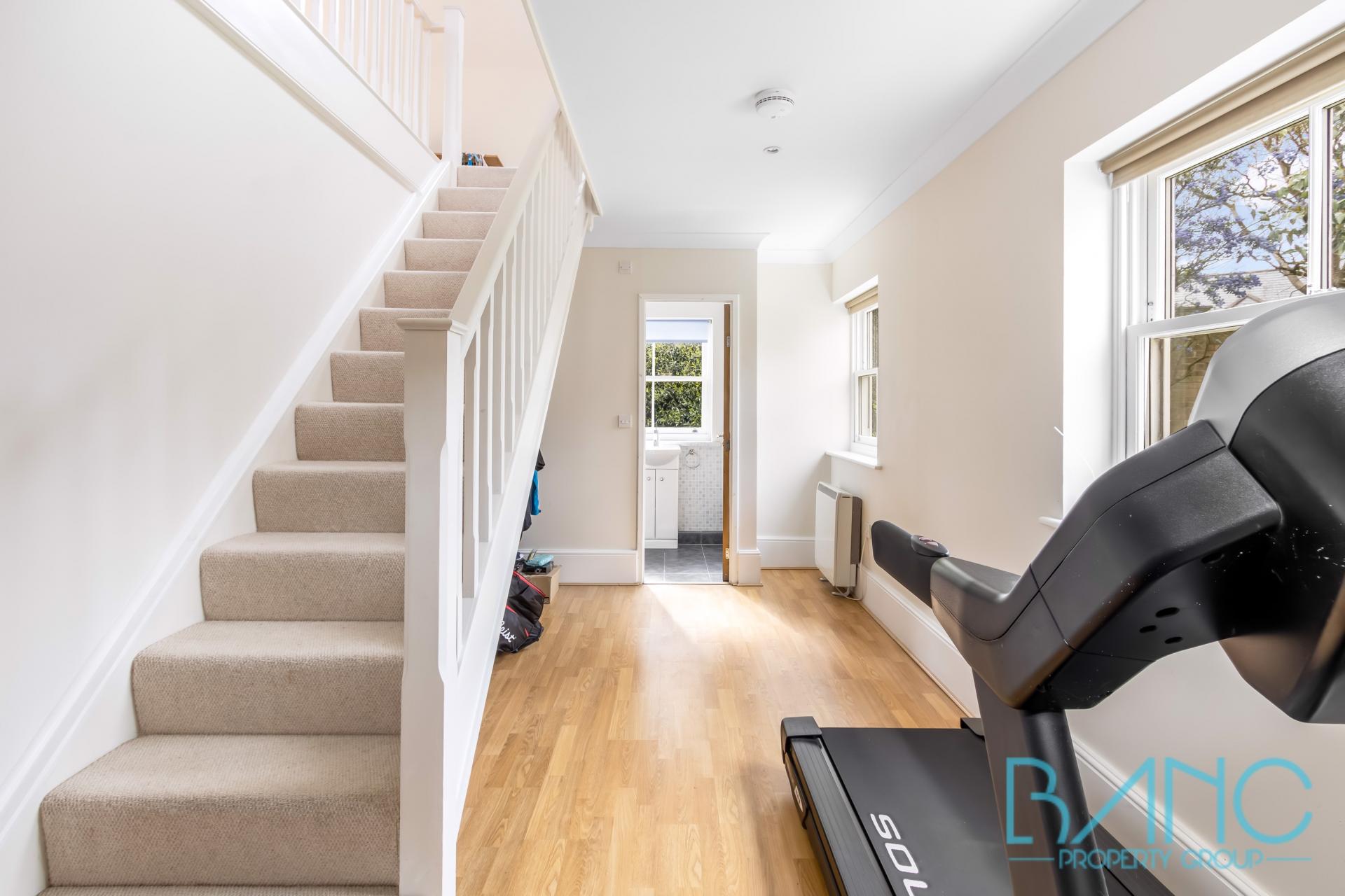 Externally, this property is equally impressive. The impeccably maintained gardens elegantly wrap around the home, providing a private and serene outdoor retreat. Adding to its appeal, a substantial double garage offers further versatility, featuring an additional hobby room and shower room on the ground floor. A staircase leads to an expansive multi-purpose room, perfect for a home office, gym, or creative space. Located in the desirable area of Goffs Oak, this outstanding home presents a rare opportunity to reside in a peaceful, prestigious setting.