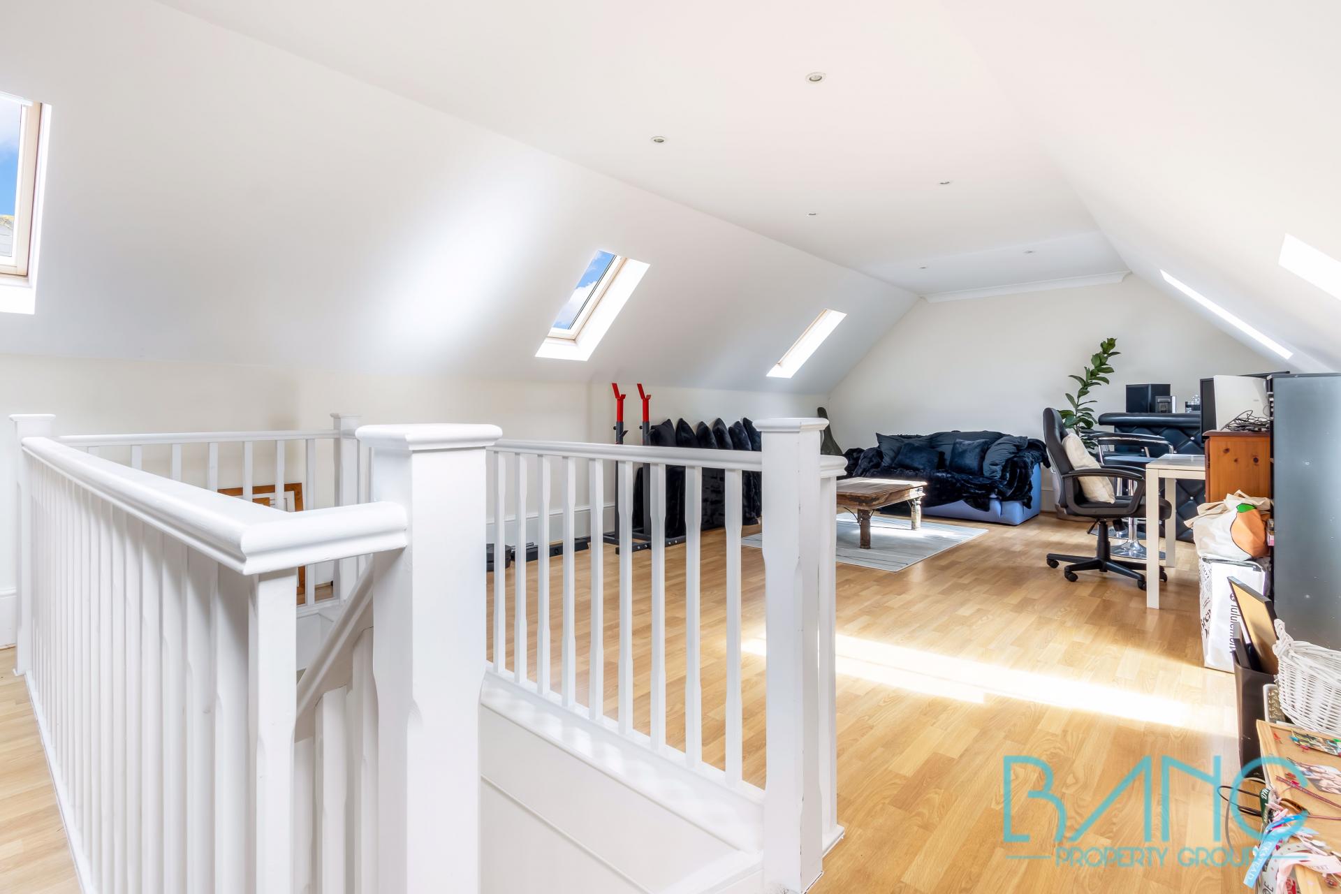 Ascending the oak staircase, the first floor reveals a spacious galleried landing connecting the four well-proportioned bedrooms, accompanied by two stylish bathrooms.