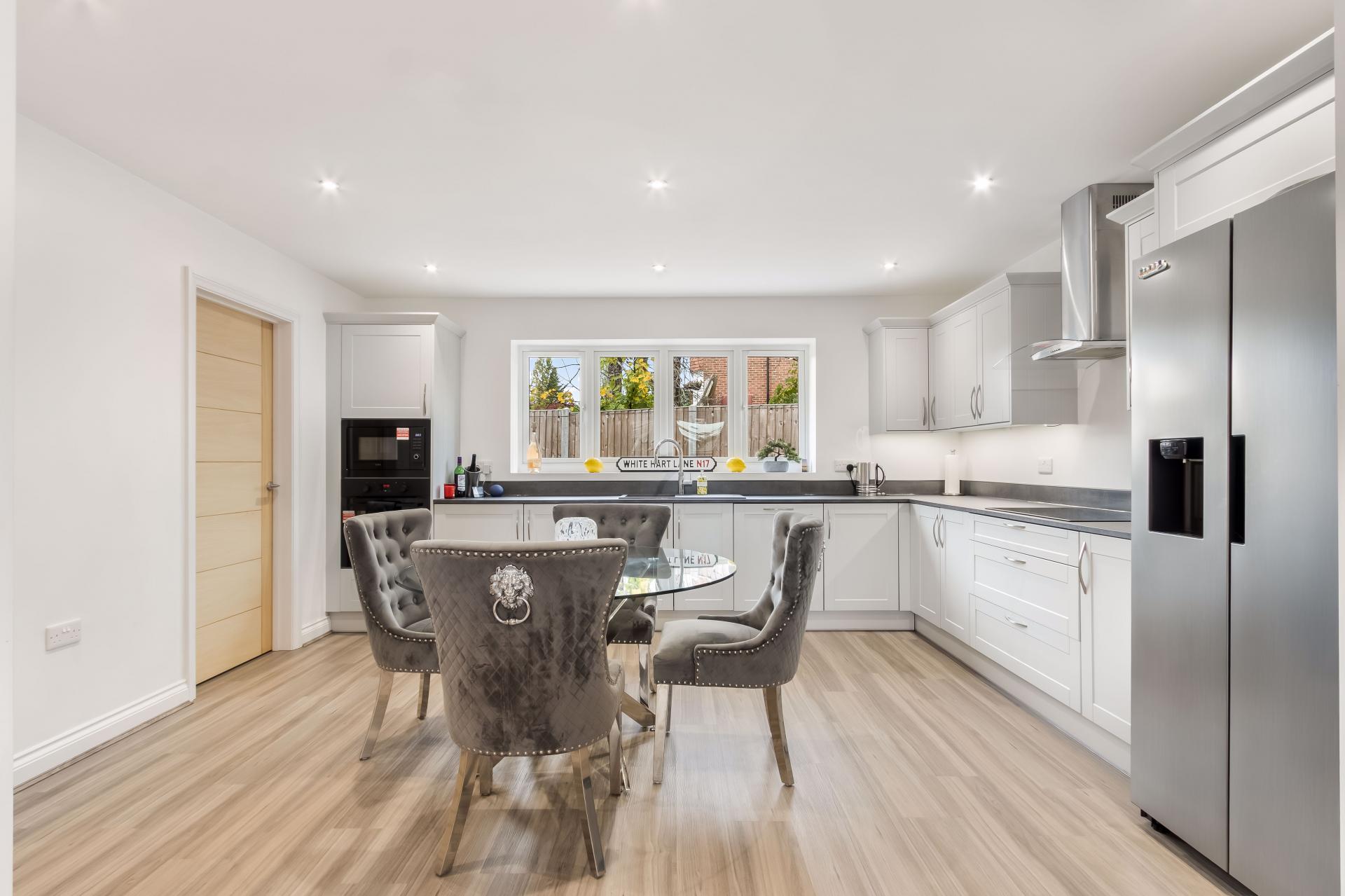 Set in a peaceful and convenient location close to Goffs Academy School, this beautifully designed three-bedroom detached home combines modern style with generous living space. Built to a HIGH STANDARD, the property offers a light-filled 24FT LIVING ROOM, a SEPARATE DINING ROOM, and a CONTEMPORARY KITCHEN/BREAKFAST ROOM with adjoining UTILITY AREA. Upstairs, there are two double bedrooms, including a MAIN BEDROOM WITH EN-SUITE SHOWER ROOM, along with a LUXURY FAMILY BATHROOM. Outside, the WEST-FACING GARDEN (APPROX. 59FT WIDE) enjoys plenty of afternoon sun and provides an ideal space for entertaining or relaxing. The property also benefits from AMPLE DRIVEWAY PARKING and an EV CHARGING POINT. A superb opportunity to purchase a RECENTLY BUILT HOME offering excellent proportions, modern finishes, and a great location for local schools and amenities.