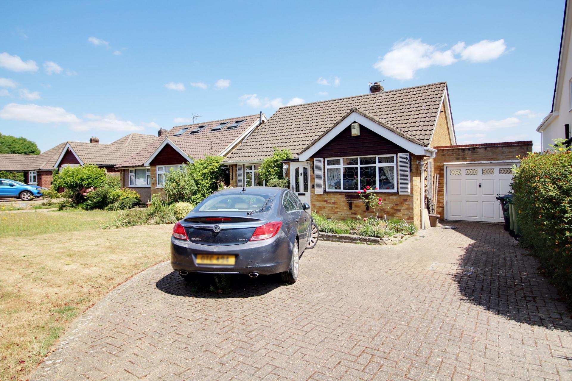 CHAIN FREE. This charming two-bedroom detached bungalow is tucked away in a peaceful cul-de-sac, just a short walk from the heart of Goffs Oak village and Goffs Oak Primary School. Set on a generous plot that backs onto fields, the property offers excellent potential for redevelopment, subject to planning permission, making it an exciting opportunity for buyers looking to create their ideal home. Inside, the accommodation comprises a welcoming entrance hallway, a spacious kitchen/breakfast room, and a bright, open plan living and dining area. There are two well-proportioned bedrooms and a family shower room, all arranged to offer comfortable and practical living. Outside, the property boasts a fantastic rear garden backing onto fields beyond, providing a sense of space and privacy. Additional features include a garage with an adjoining lean to and ample off-street parking for several vehicles. This is a rare opportunity to acquire a home in a desirable location with scope to add value and tailor it to your own taste all offered with no onward chain.