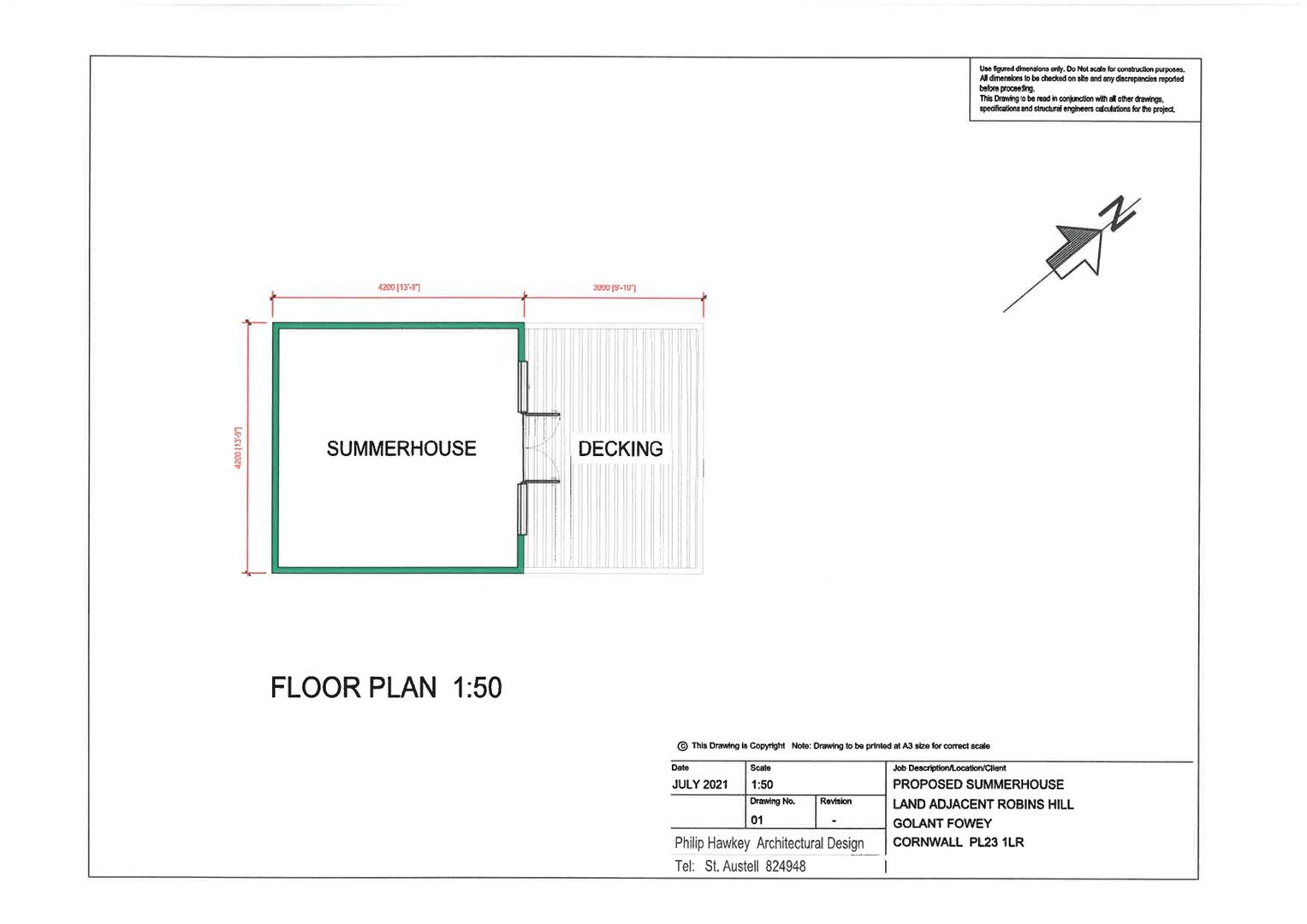 The Plot - The full planning permission gives you the opportunity to construct a log cabin summer house for occasional use and enjoyment. The summerhouse is square in plan form, measing 4.2 meters square. The summer house consists of an open plan space, with an area of timber decking to the front elevation facing the estuary.