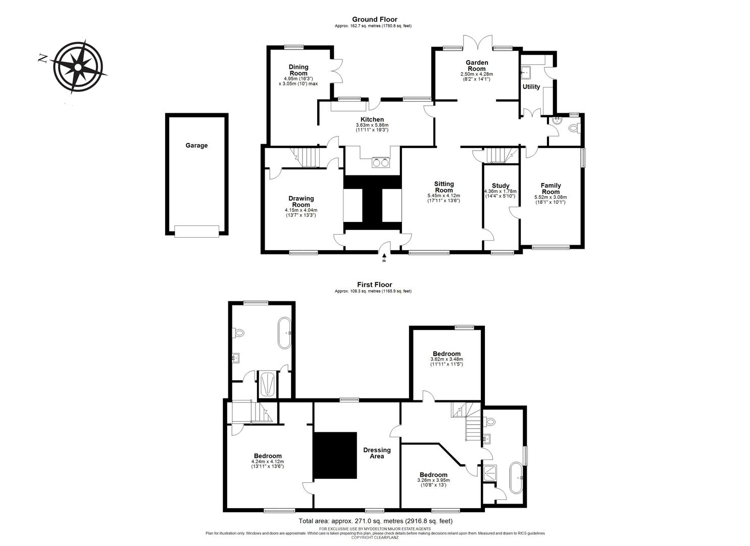 First Floor: Master Bedroom with Ensuite, Three Further Bedrooms, Family Bathroom,