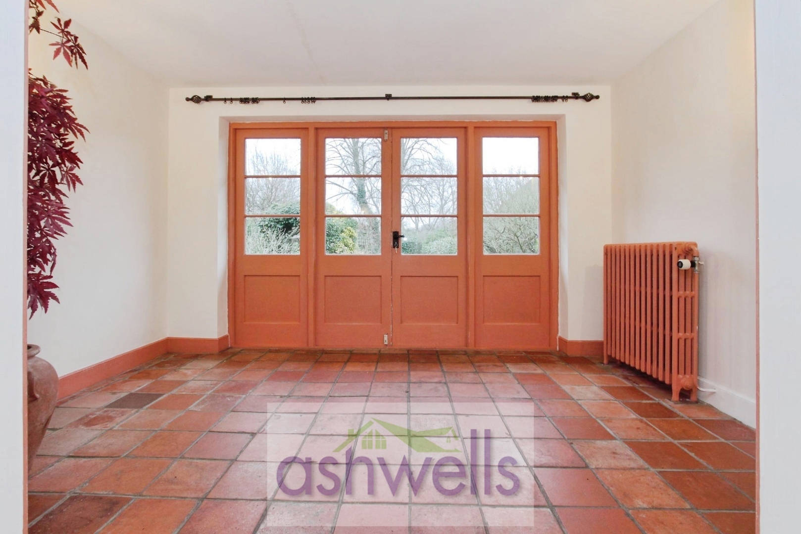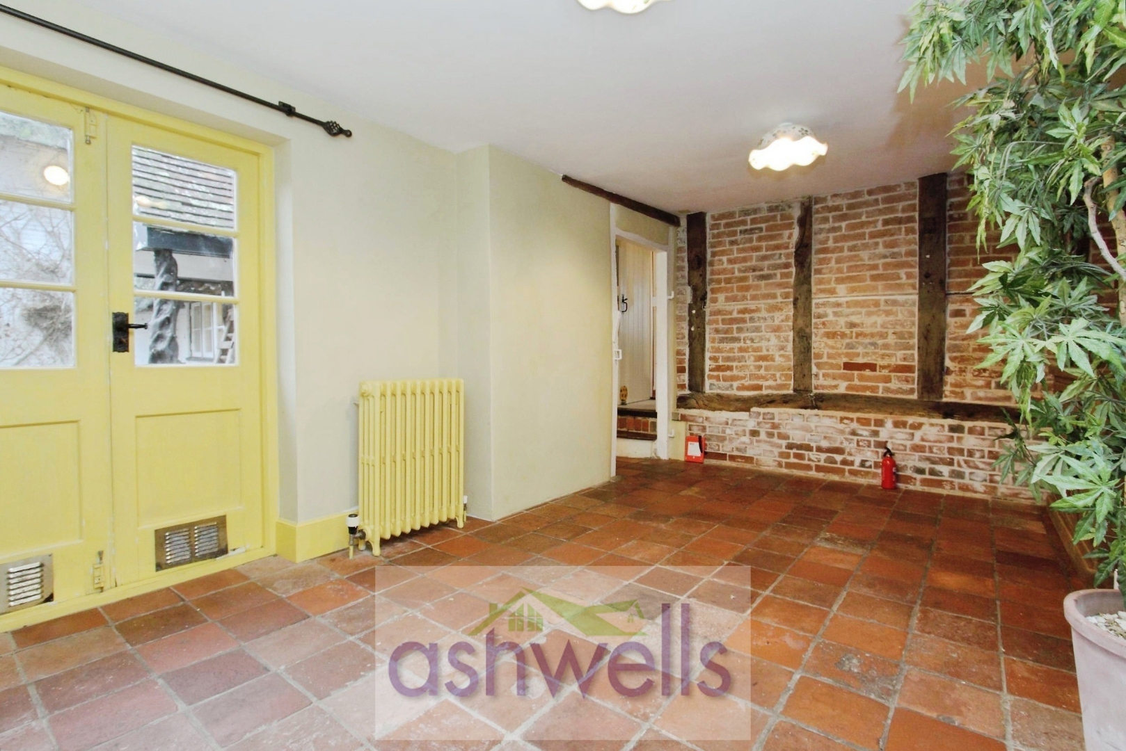 Family Room - Dual aspect room with cast iron radiators and steps to
