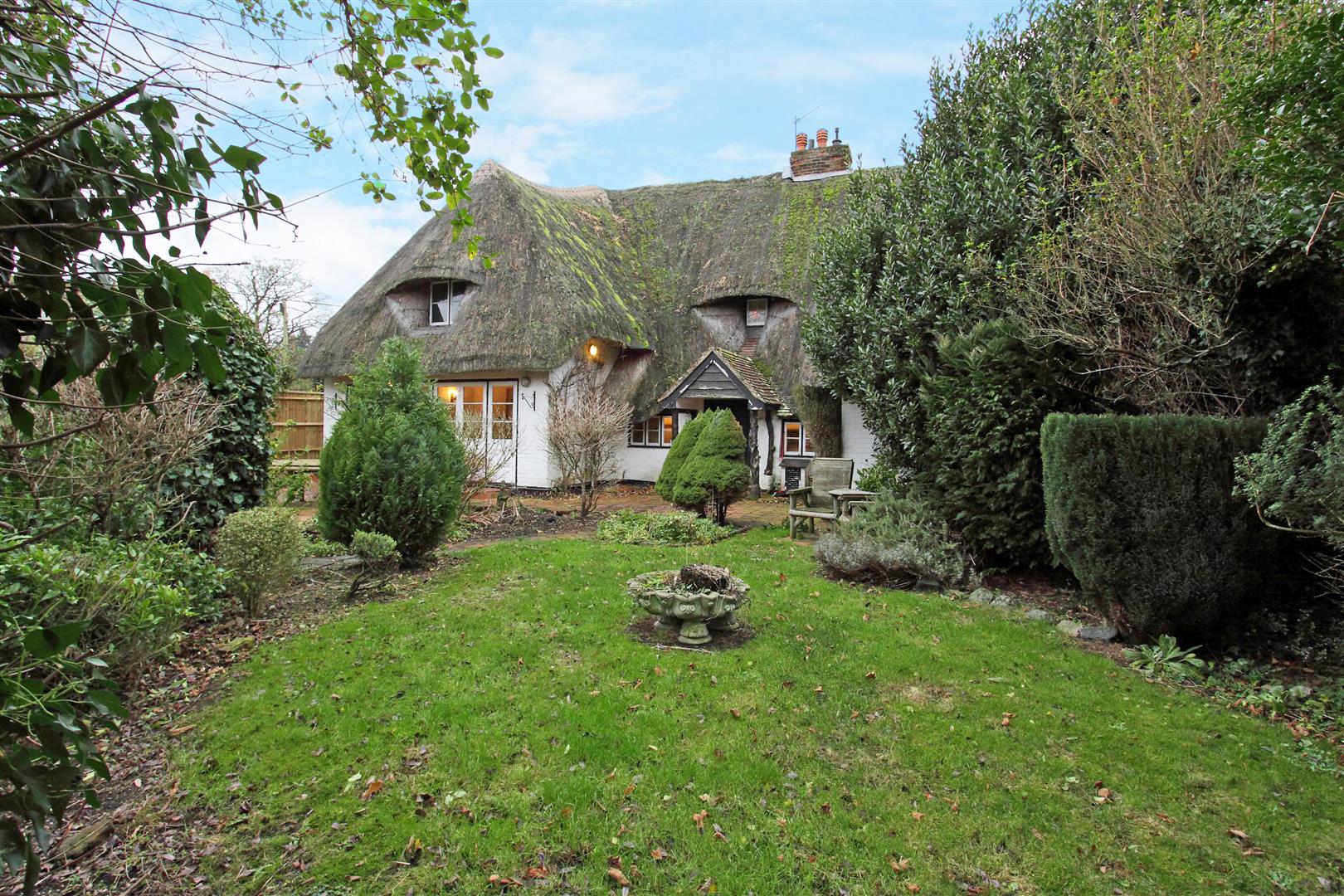 Front Approach - Nestled in the heart of the picturesque village of Goodworth Clatford, this enchanting Grade II Listed thatched cottage exudes timeless charm and character. Offering over 2,600 sq. ft. of beautifully presented living space, the property provides exceptionally spacious and versatile accommodation. The home features five stunning reception rooms, including a captivating sitting room with a cozy log burner, creating a warm and inviting atmosphere. The dining room and sun lounge at the rear boast delightful views of the meticulously maintained mature garden, while two additional front-facing reception rooms offer flexibility for modern family living. This exquisite property harmoniously blends historical elegance with contemporary comfort, making it a perfect retreat in a quintessential English village setting.