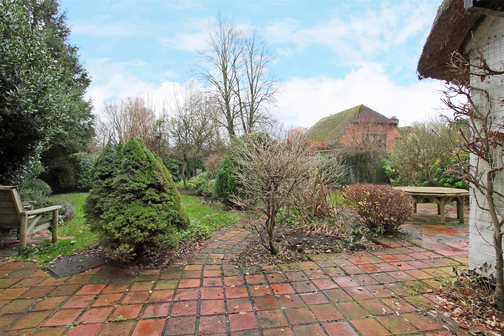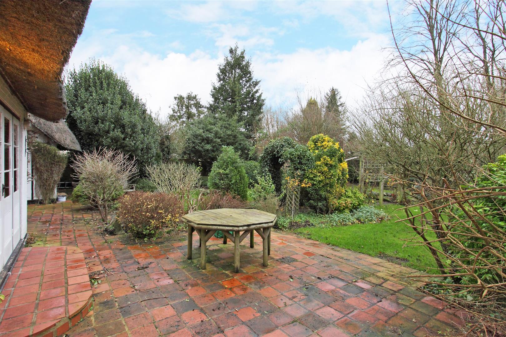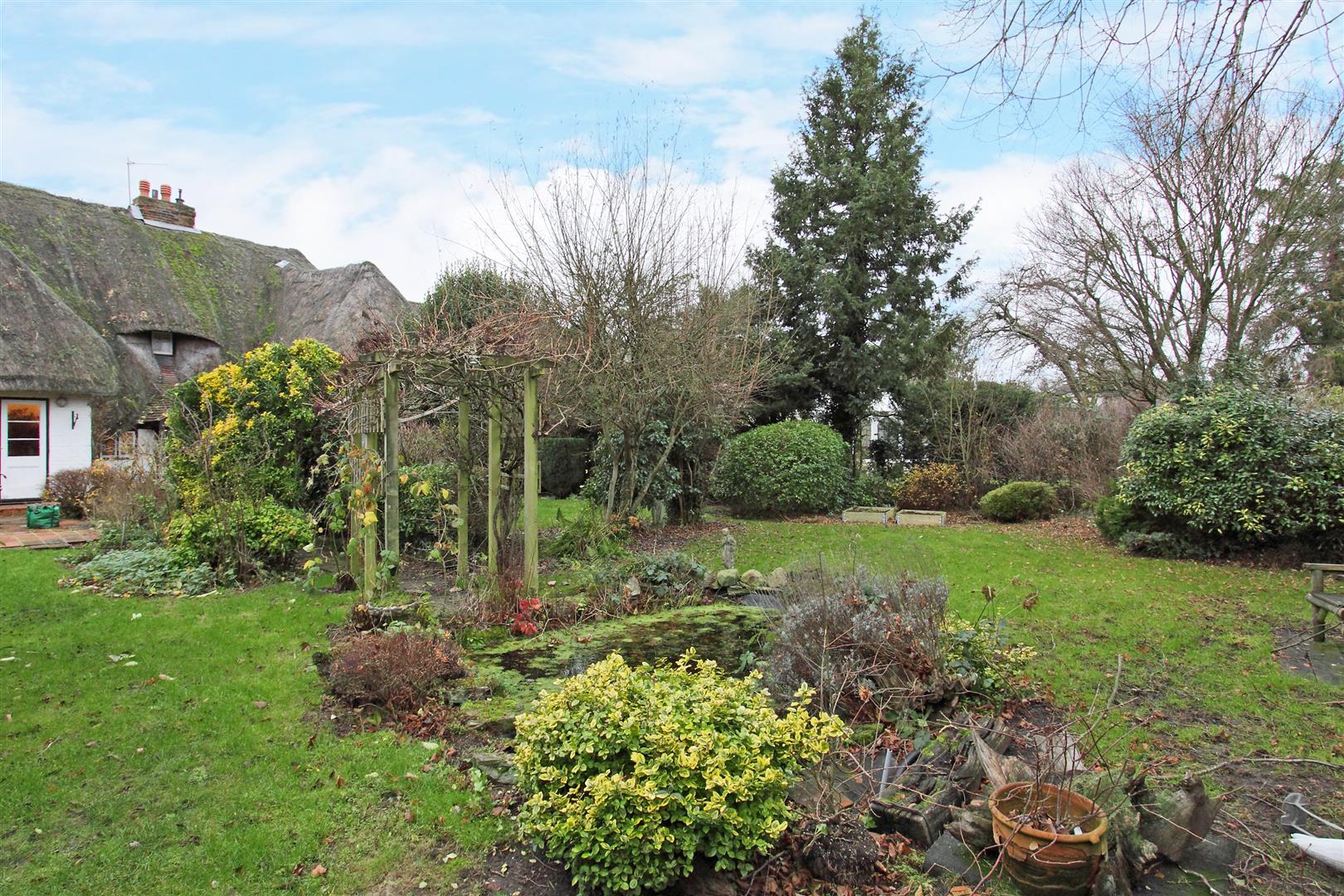 Grounds - The delightful cottage garden wraps around the cottage with a wealth of mature borders, two patio areas and the remainder laid to lawn. There is a single garage with up and over door over the road.