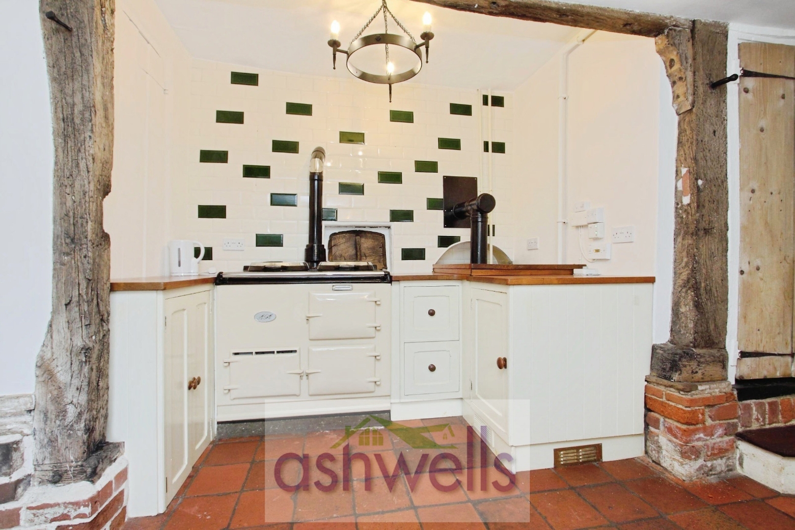 Kitchen - A range of units set on a flagstone floor, butler sink, aga, gas fired boiler and windows and door to rear aspect.