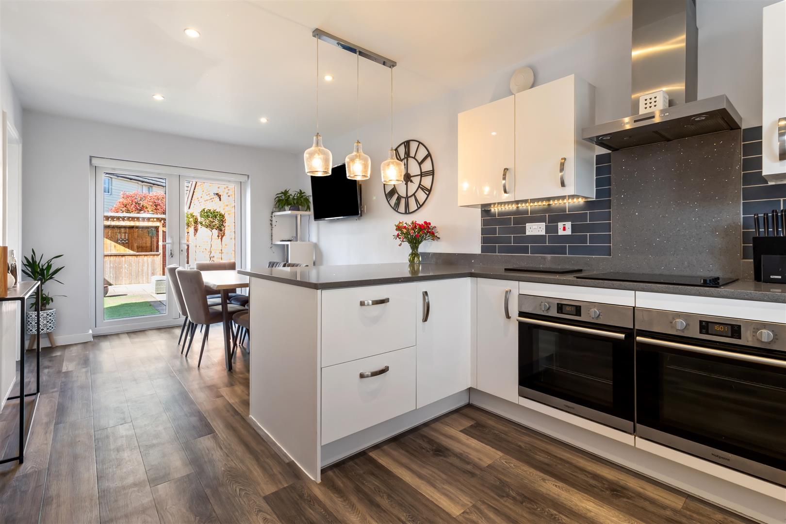 - Upgraded kitchen/dining with integrated appliances and double doors to the rear garden