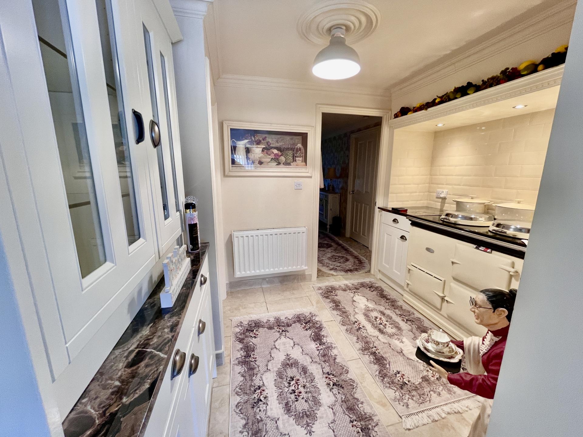 INNER LOBBY/2ND KITCHEN 8' 2" x 7' 3" (2.49m x 2.21m) Skimmed and coved ceiling, centre ceiling rose, centre light point, porcelain tiled flooring, fitted with a range of base units with work surfaces over, tiled splashbacks, feature Aga(not connected), radiator, Welsh dresser (matching units), door into: