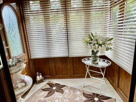 ENTRANCE PORCH 5' 1" x 5' 11" (1.55m x 1.81m) UPVC construction with UPVC double glazed windows to both sides and to the front elevation, obscured leaded UPVC double glazed door to the side elevation, polycarbonate roof, porcelain tiled flooring.