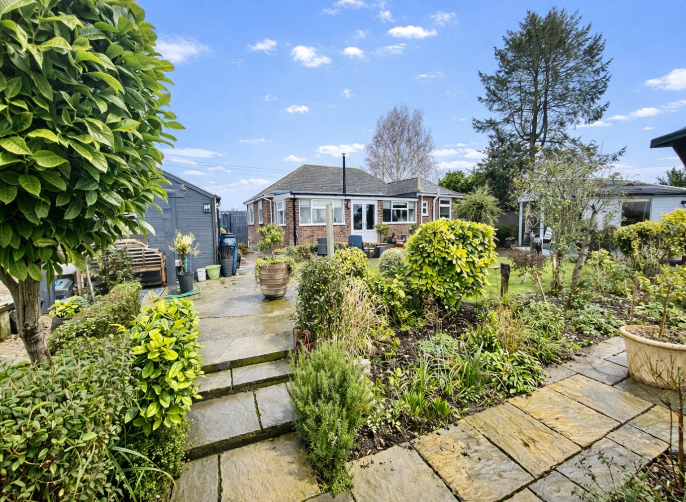 EXTERIOR There is a hedged boundary to the front of the property and two separate gravelled driveways providing parking. The front garden is mainly laid to lawn with a wide range of mature shrub and tree borders. There is a gravelled area to the side and there is a patio to the other side with further gravelled parking.
