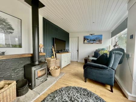 GARDEN ROOM Of brick construction with 2 UPVC double glazed windows to the rear elevation, UPVC double glazed French doors to the rear elevation, UPVC double glazed window to the side elevation, solid roof, strip light, oak effect laminate flooring, TV point, fitted fireplace with oak mantle, tiled inserts and tiled hearth with fitted Eco multi fuel burner. Door to: