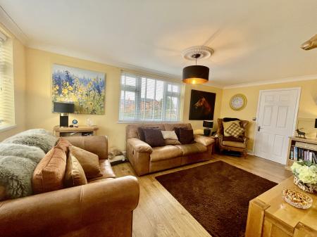 FORMAL LOUNGE 10' 2" x 18' 4" (3.11m x 5.61m) UPVC double glazed window to the front and side elevations, skimmed and coved ceiling, decorative ceiling rose, centre light point, smoke alarm, 2 radiators, TV point, oak effect laminate flooring, door into: