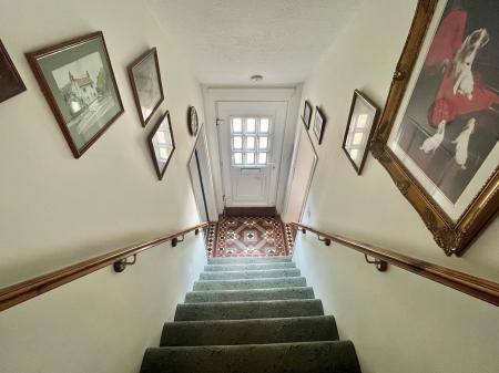 From the front Entrance Hall the 1.2m wide carpeted staircase rises to: