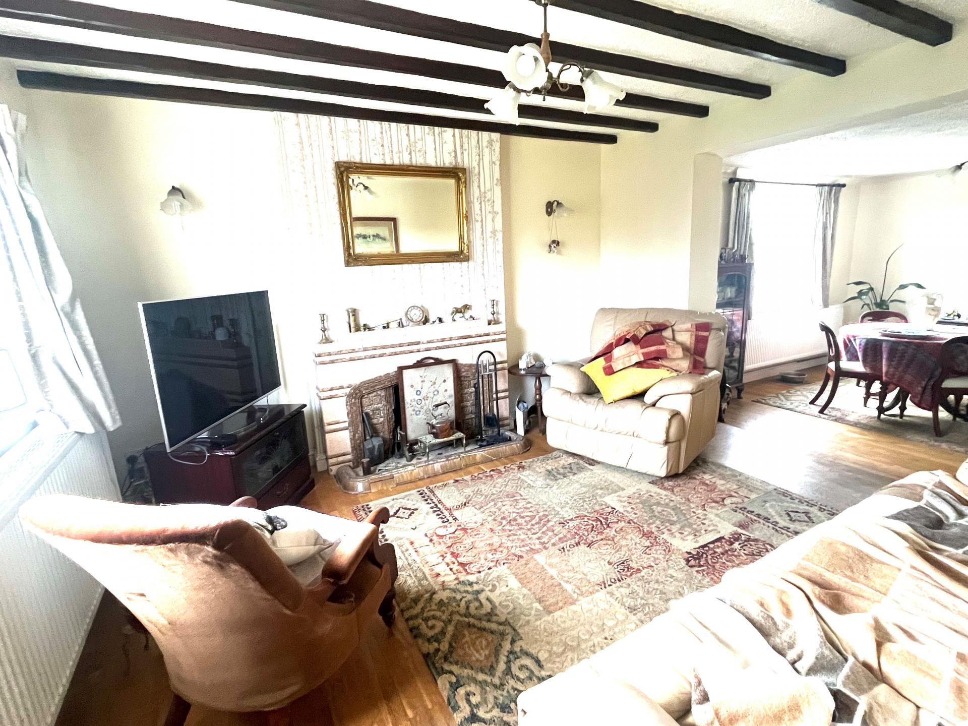 SITTING ROOM 12' 2" x 12' 8" (3.71m x 3.88m) Beamed and textured ceiling, ceiling light, radiator, UPVC window to the front elevation.
