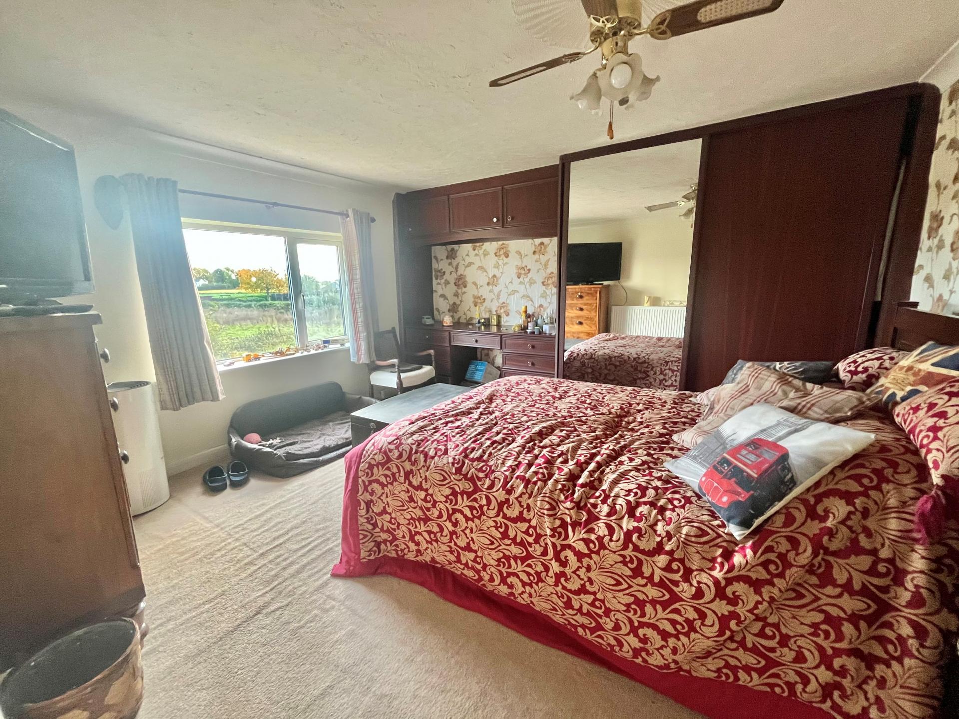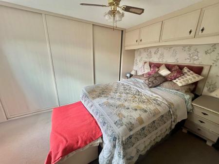 BEDROOM 3 12' 3" x 11' 8" (3.75m x 3.56m) plus recess with full range of fitted wardrobes, bedside cabinets with over bed storage cabinets, coved and textured ceiling, ceiling light with propeller style fan, radiator, UPVC window to the side elevation.